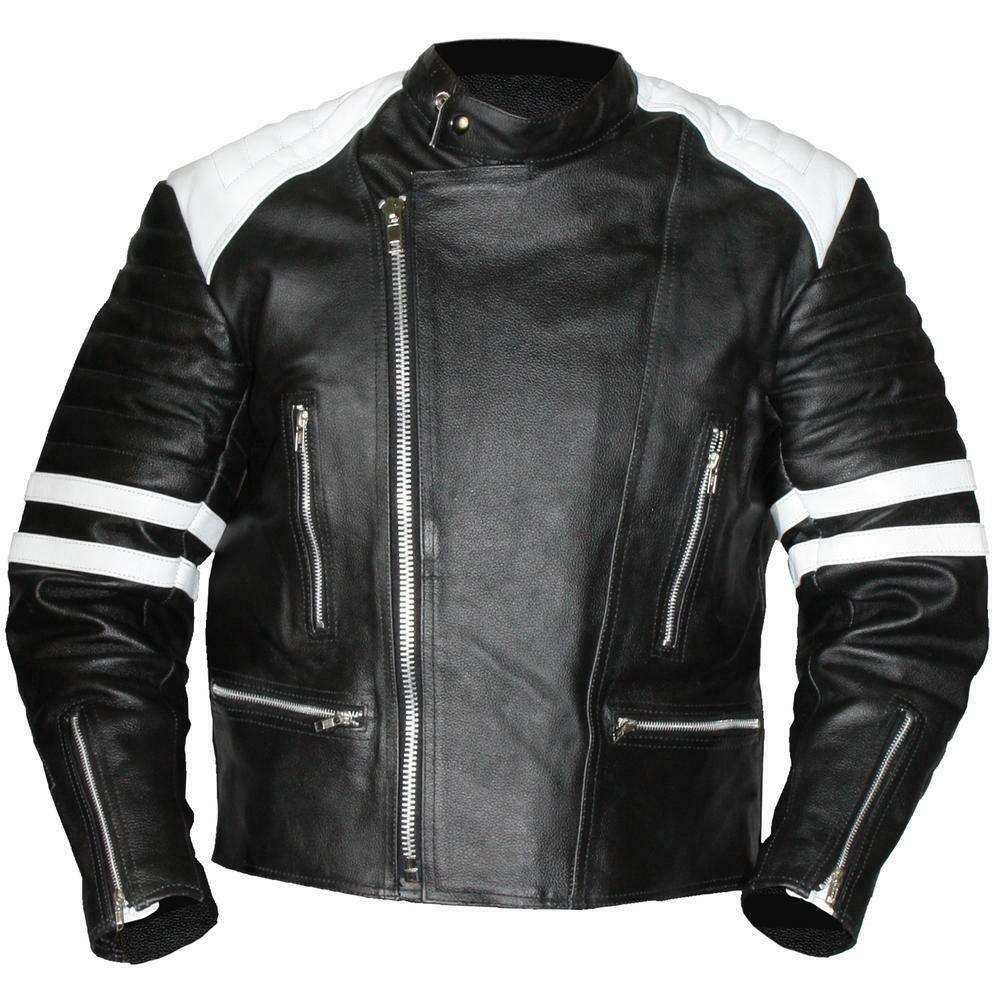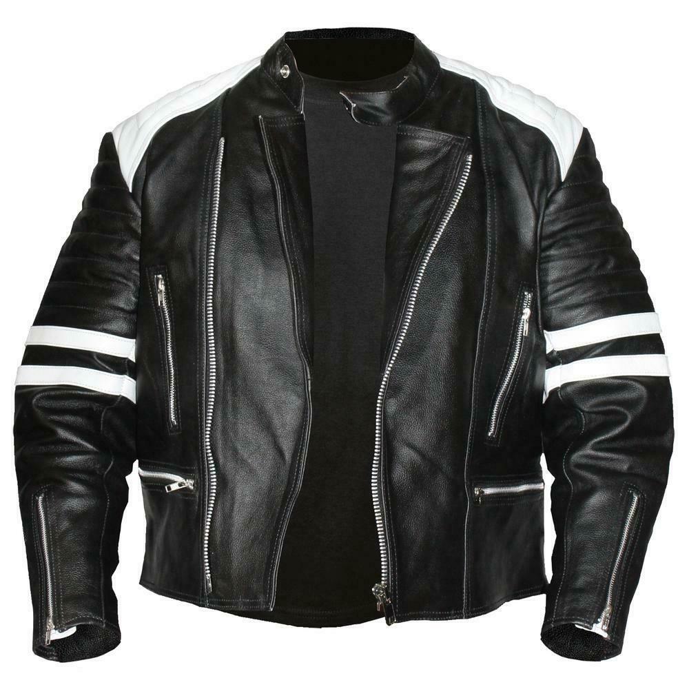 Men's Custom Made Black & White Leather Zipper Style Fashion Biker Leather Jackets