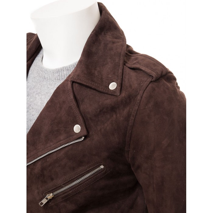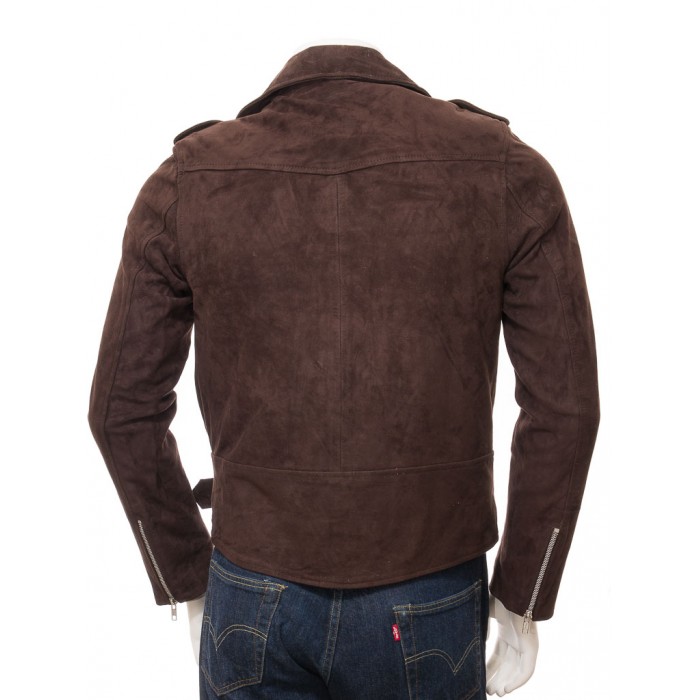 New Men's Handmade Brown Suede Leather Zipper Style Silver Button Fashion Leather Jacket