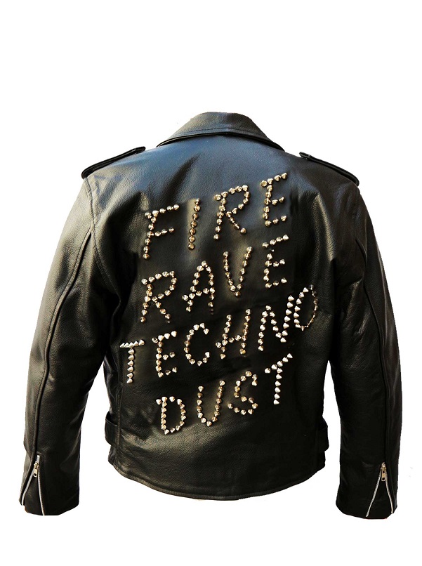 New Men Women's Custom Made Black Leather Full Metallic Studded Fire Rave Techno Dust Printed Zipper Belted Stylish Leather Jackets