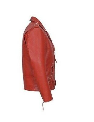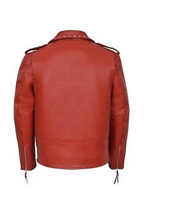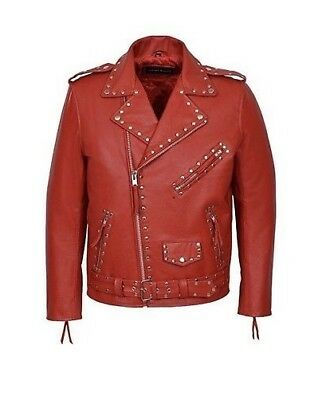 Men's New Brando Studded Slim Fit Red Designer Real Cowhide Leather Fashion Jacket