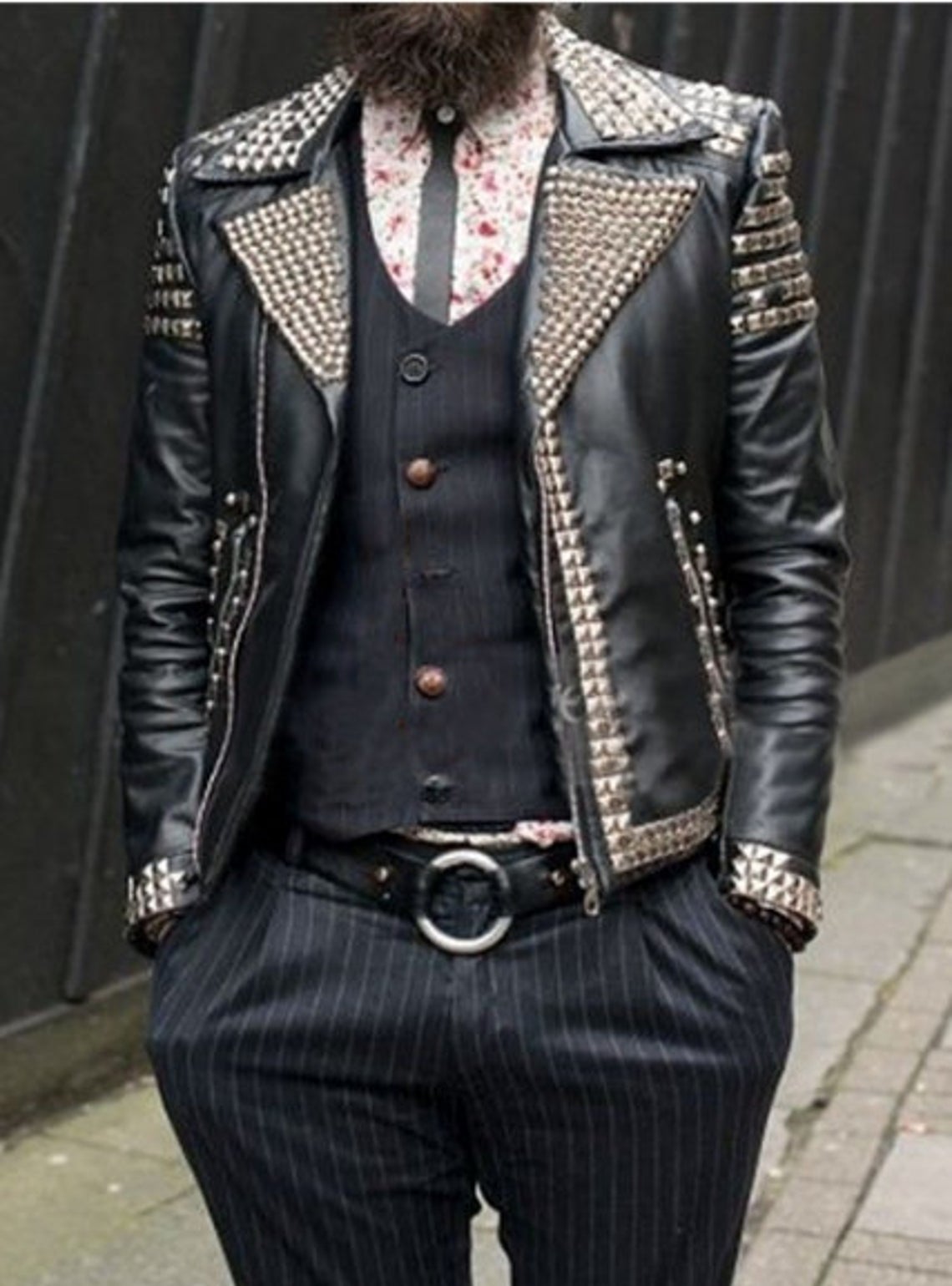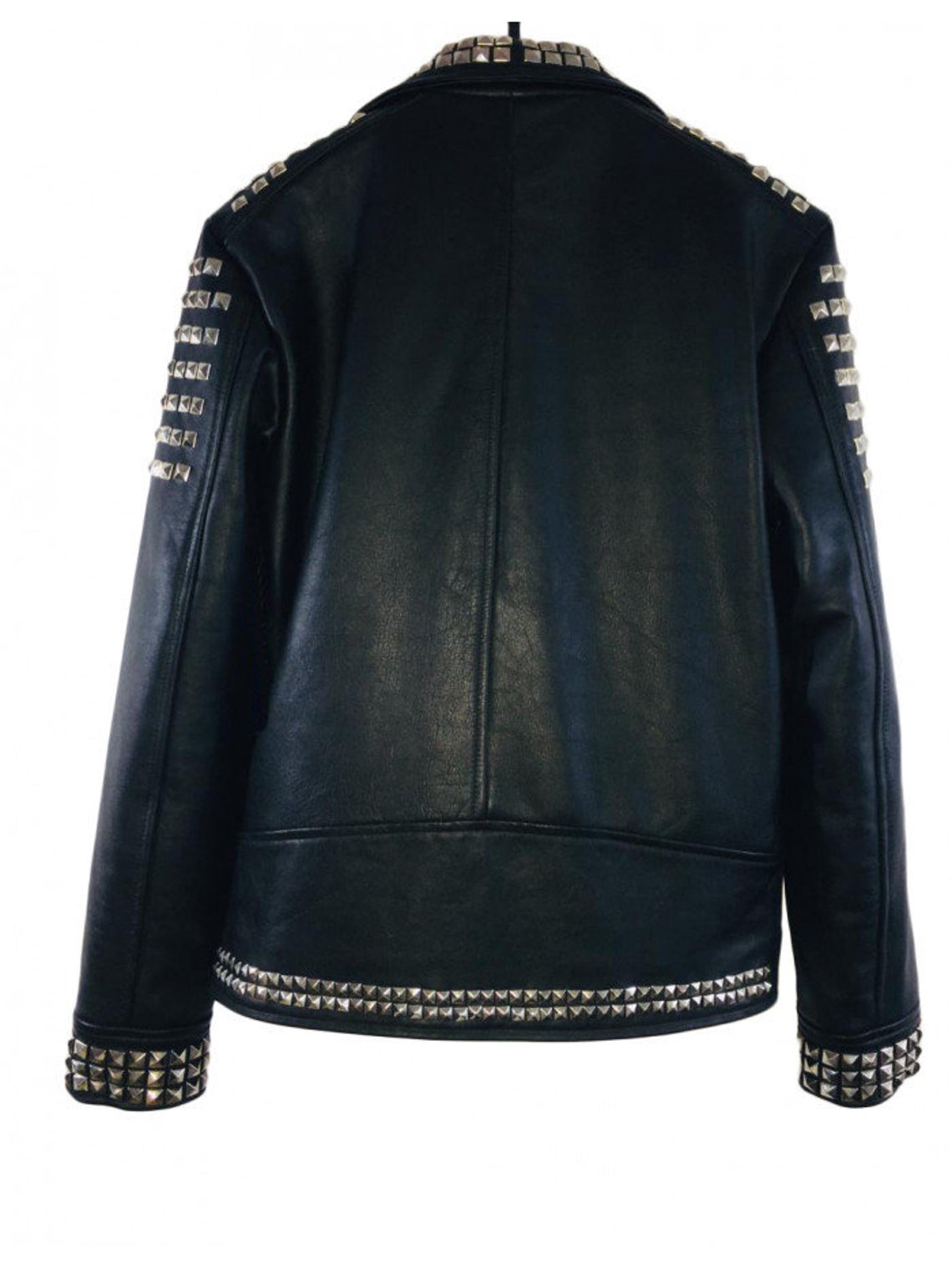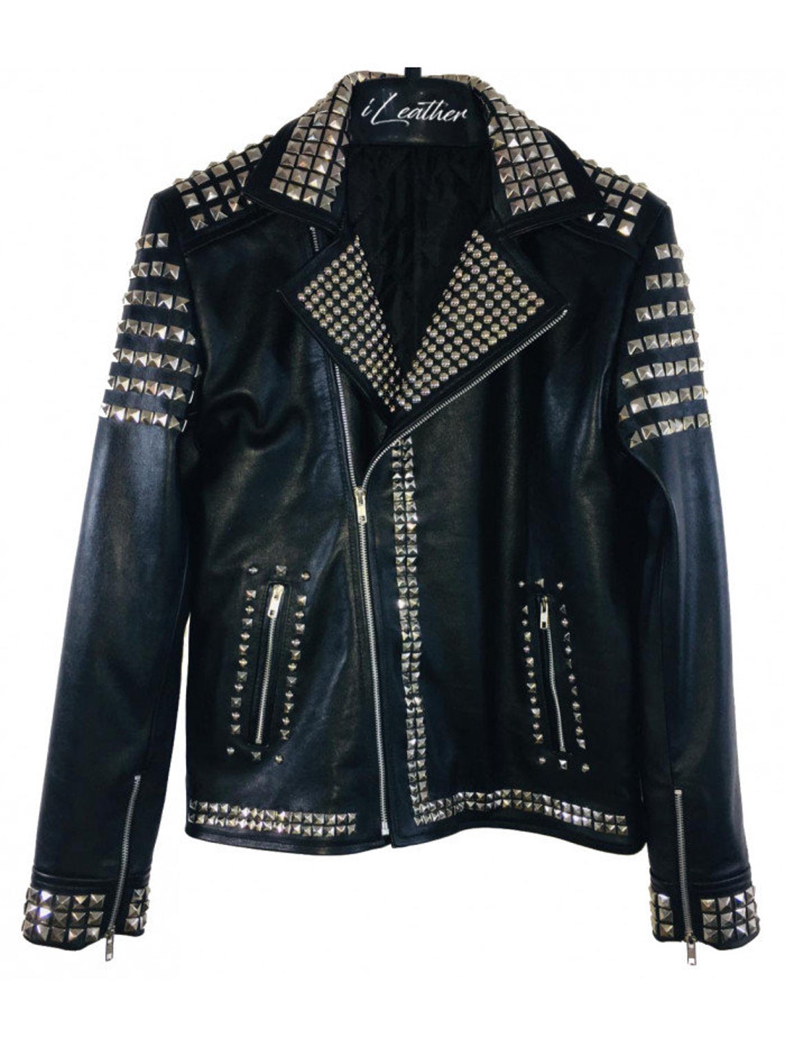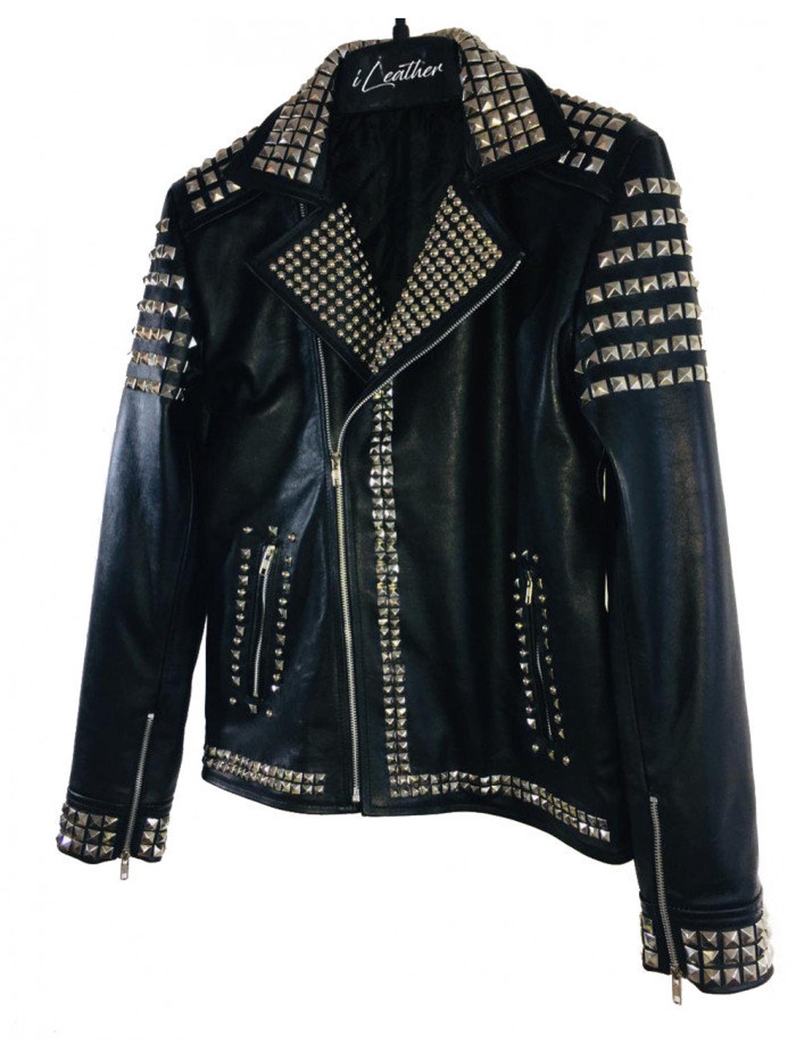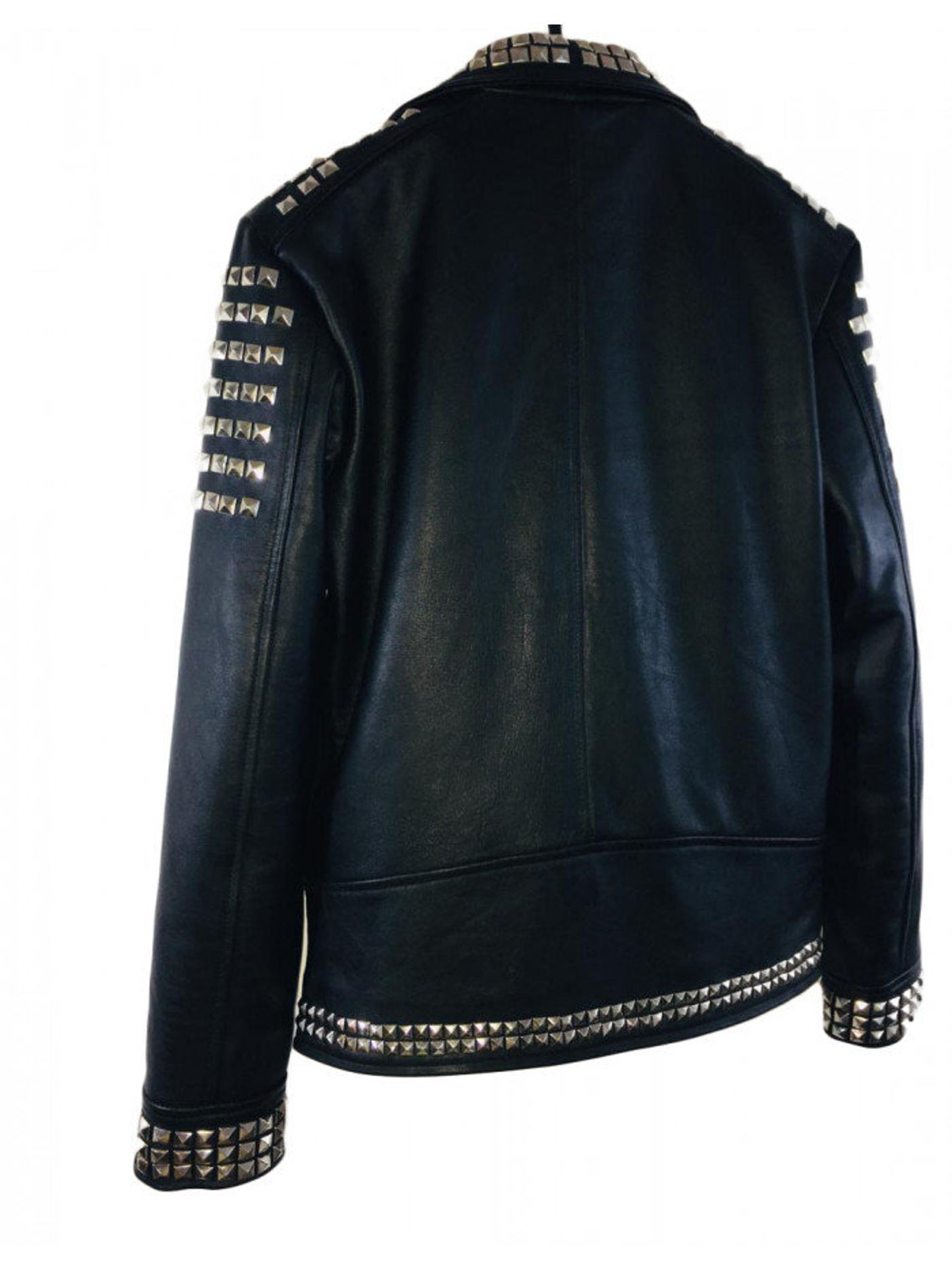 New Men's Handmade Black Leather Fashion Studded Punk Style Biker Leather Jacket