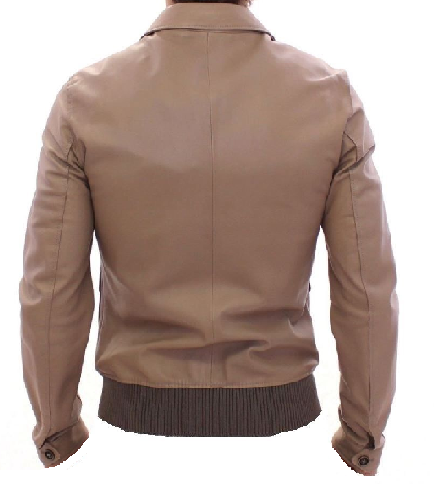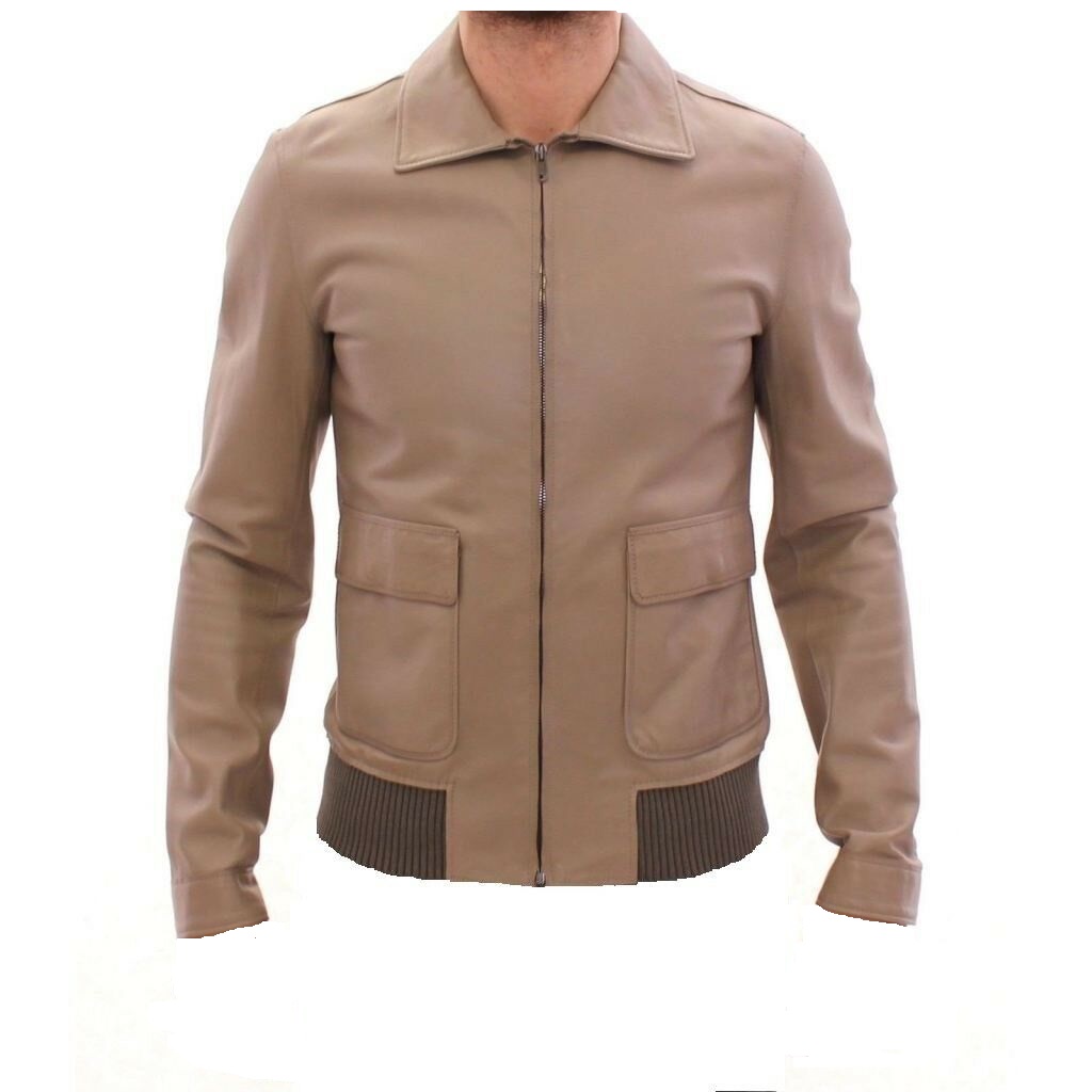 Men's New Handmade Latest Fashion Buckskin Beige Goat Leather Bomber Biker Jacket