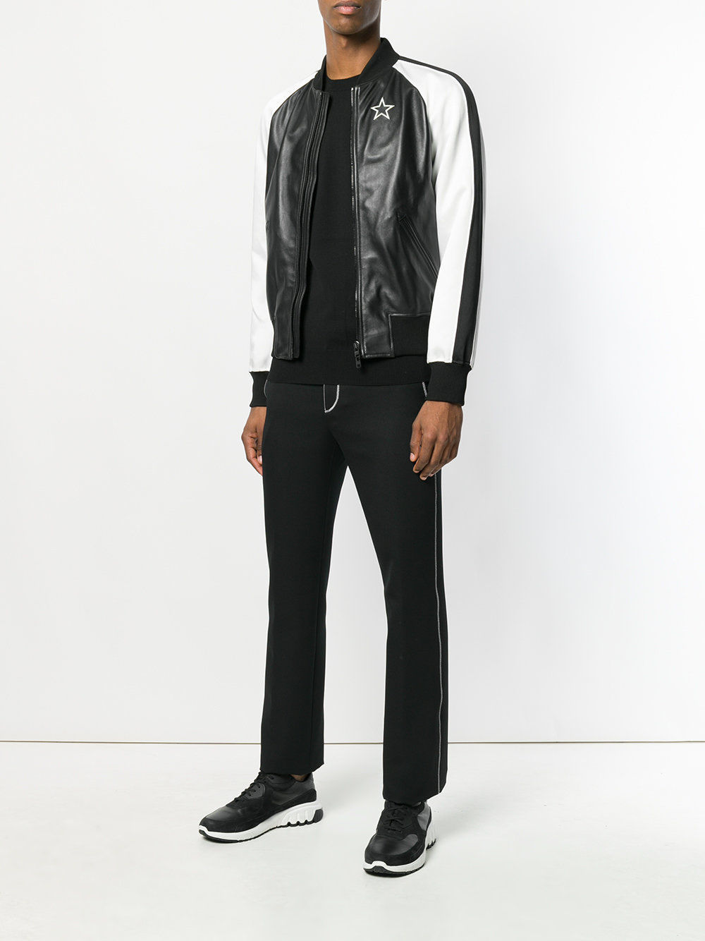 Men's New Handmade Black & White Bomber Sheep Leather Biker Style Jacket