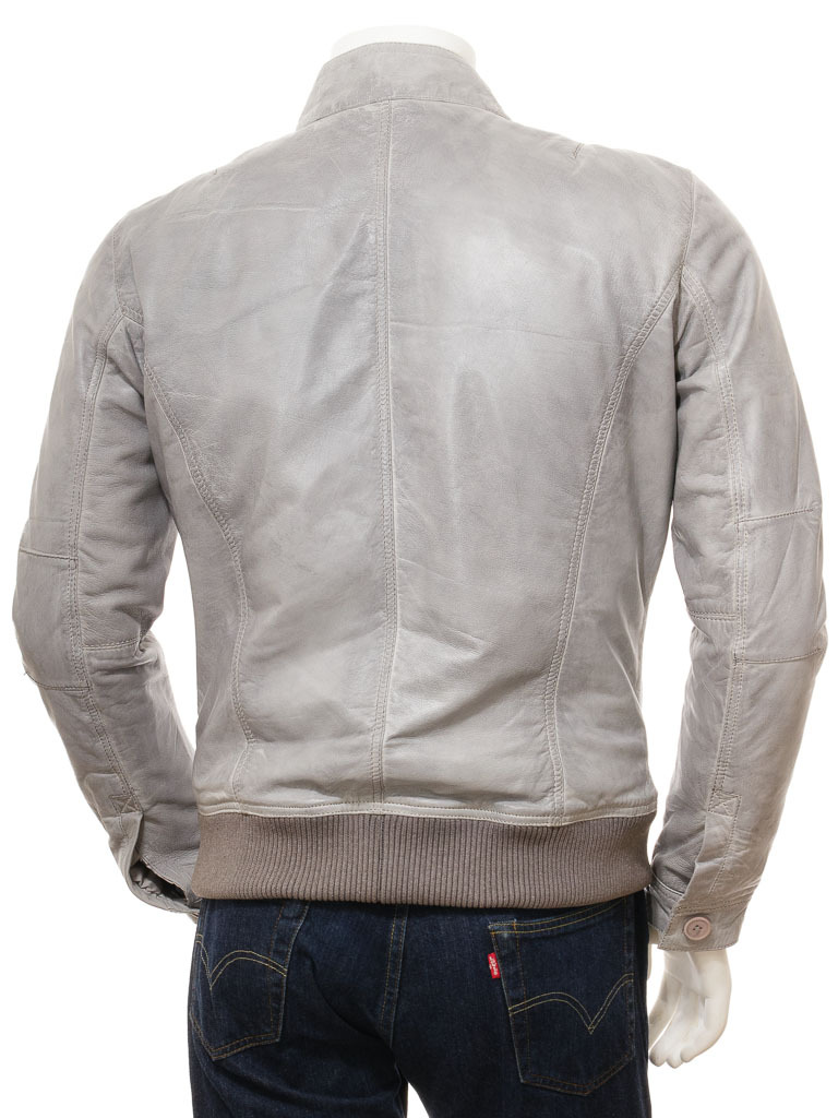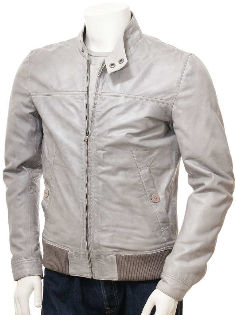 New Handmade Men's Cement Grey Sheep Leather Jacket Mens stylish Leather Jackets