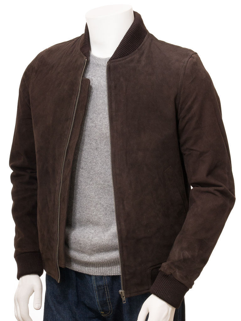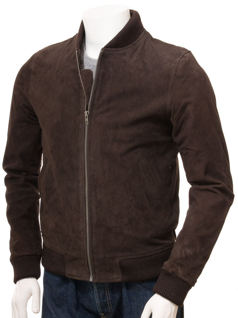Men's New Handmade Latest Trendy Brown Cow Suede Leather Bomber Jacket