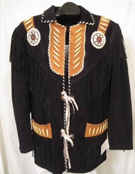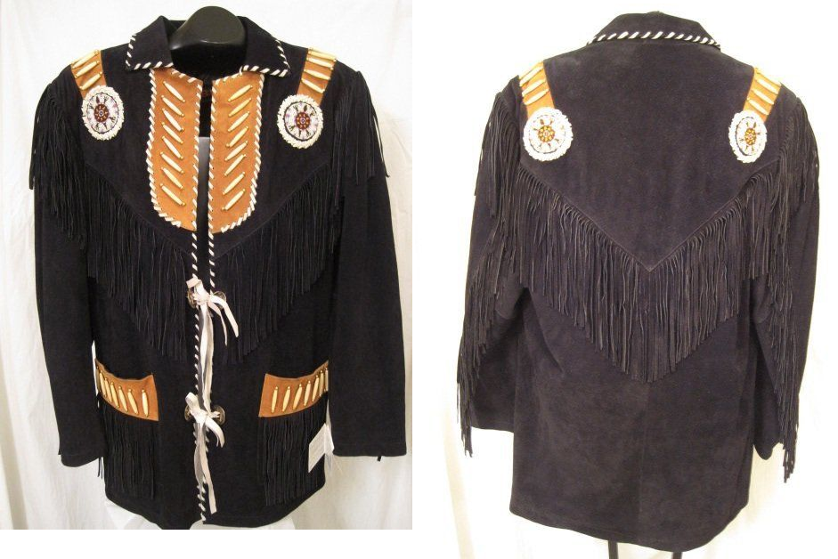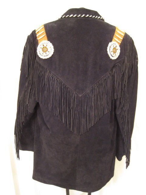 Men's New Handmade Black Western / Cowboy Suede Cow Leather Fringe Jacket
