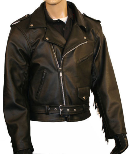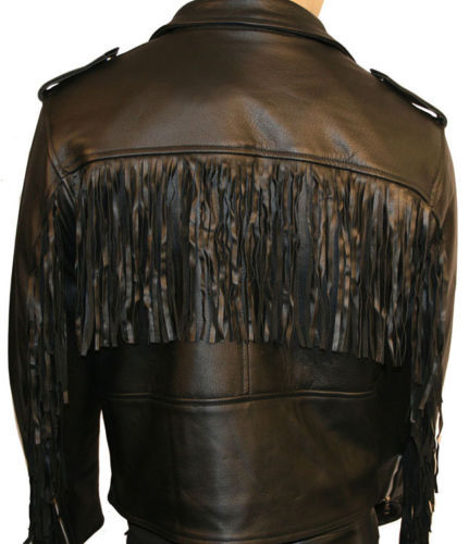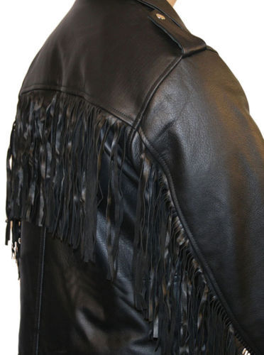 Men's Hand stitched New Quality Black Leather Motorcycle Jacket Fringes Design