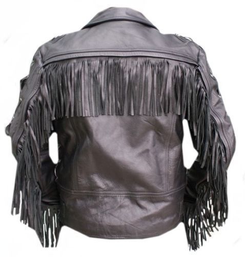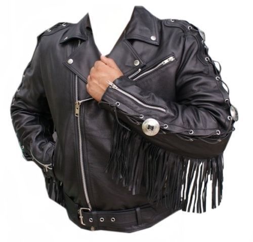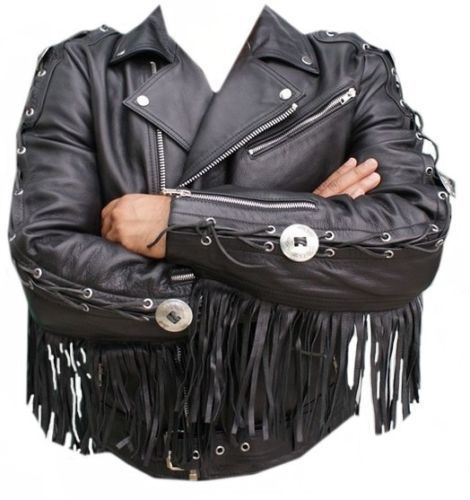 New Handmade Cowboy Men's Black Western Cow Leather Jacket Fringed/Chonchos
