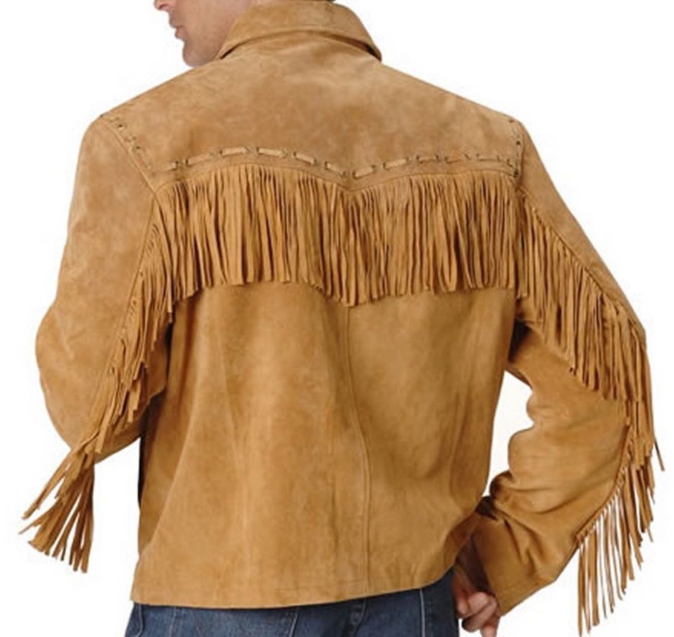 Men's New Handmade Western Tan Suede Leather Jacket Fringes