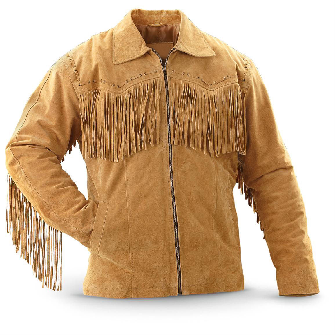 New Handmade Cowboy Men's Tan Western Cow Leather Fringed Coat