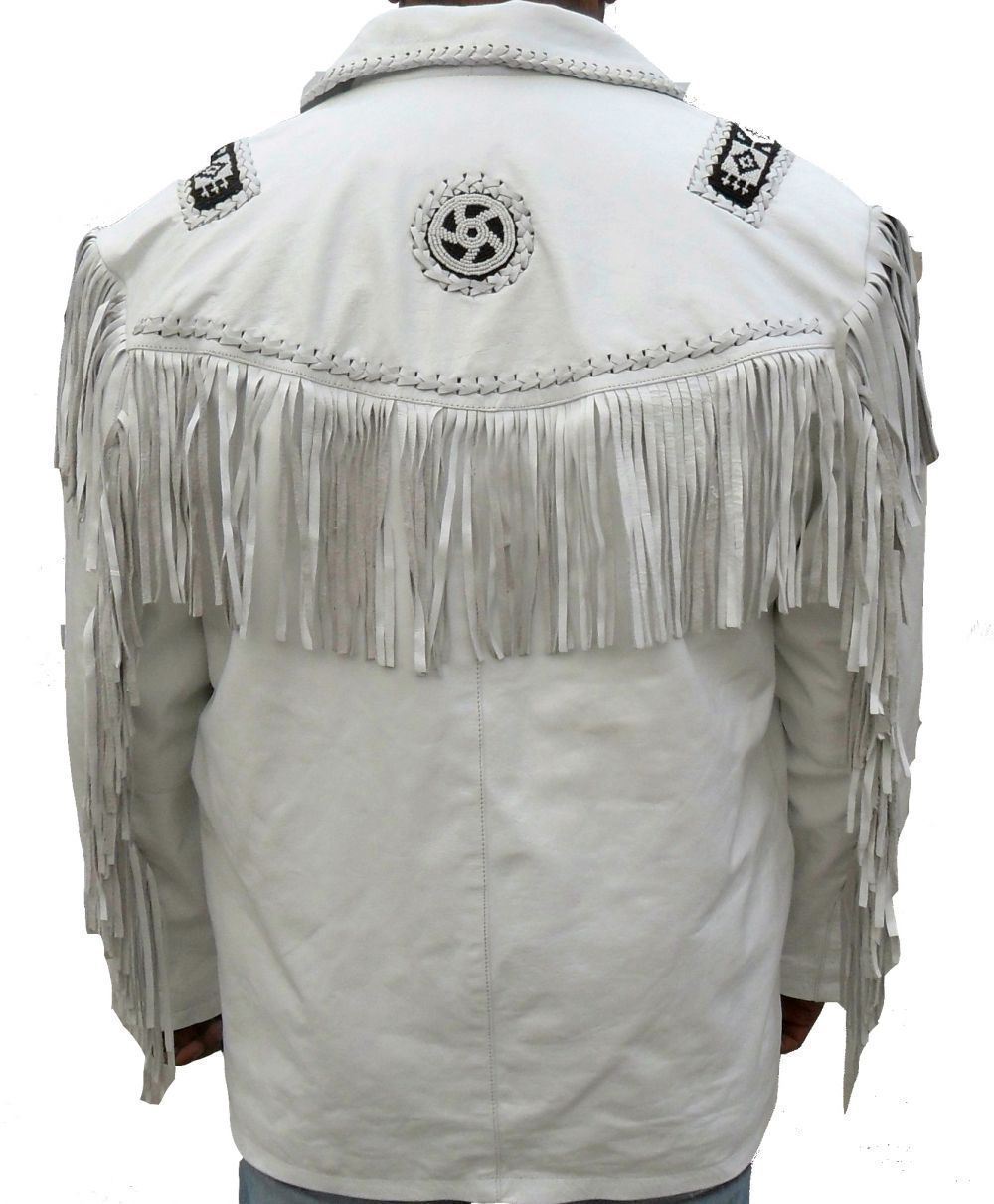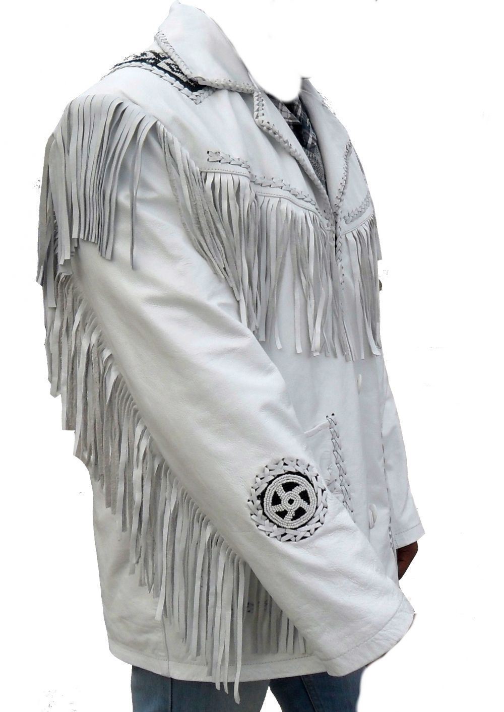 Men's New Handmade White Western Suede Cow Leather Jacket Fringes