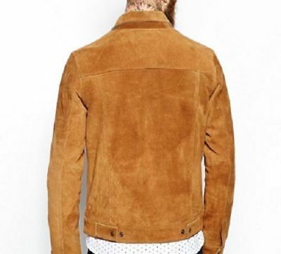 Men's New Tan Suede Leather Western Jacket Casual Wear Coat