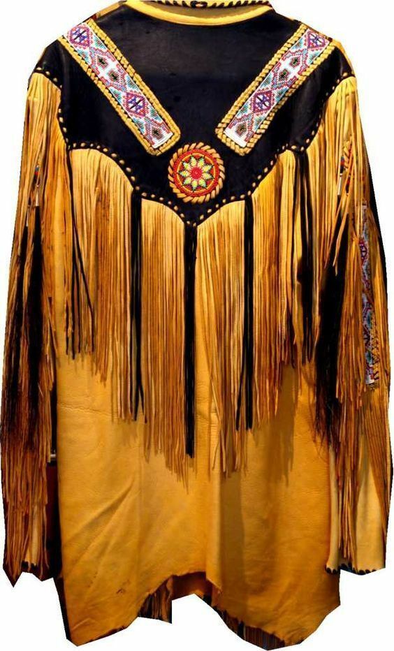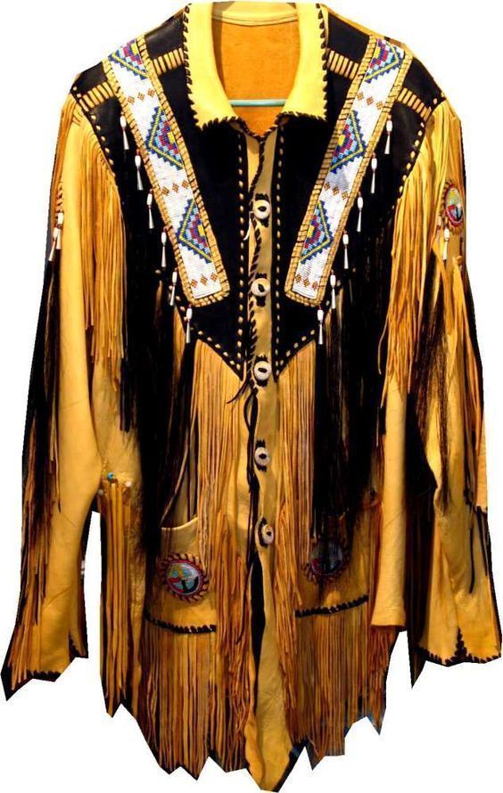 Western Men Wear Fringed and Beaded Yellow Suede Leather Jacket