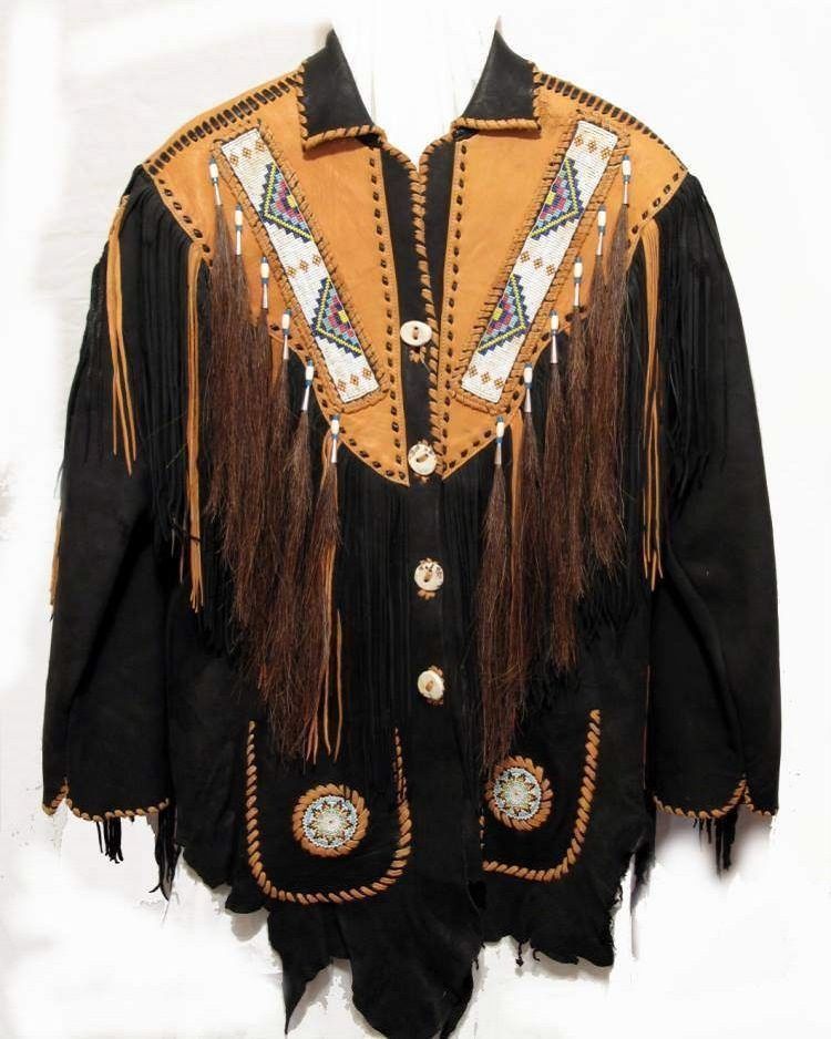 Men's Suede Leather Cow-boy Coat Fringed and Beaded Western Wear