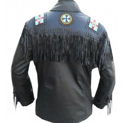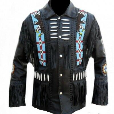 New Men's Cowhide Leather Jacket Franges and Eagle Beaded Western Wear Jackets