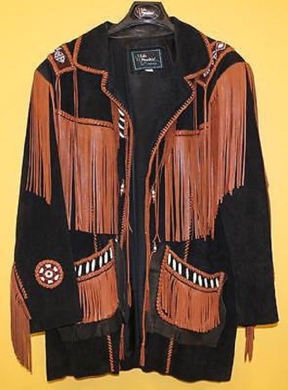 Mens Suede Cowhide Leather Cow-boy Jacket Fringes and Beads Coat
