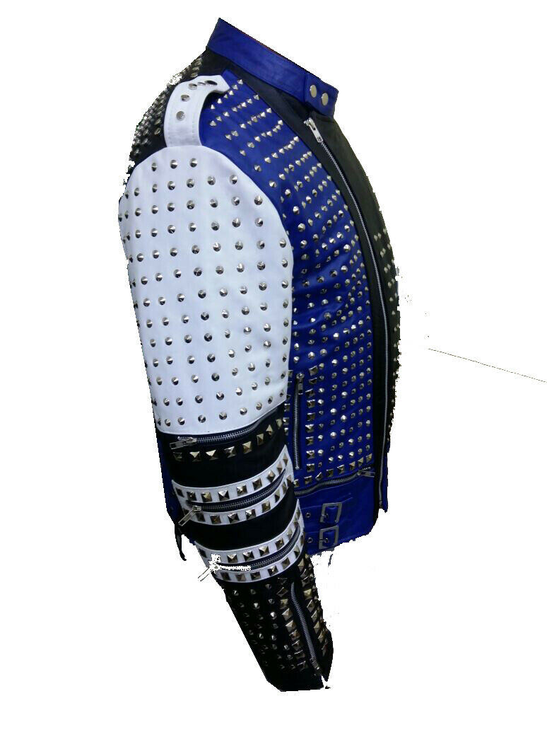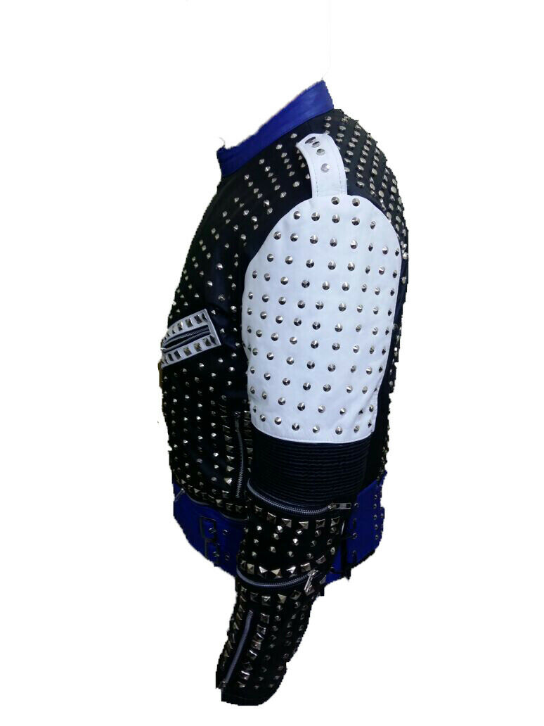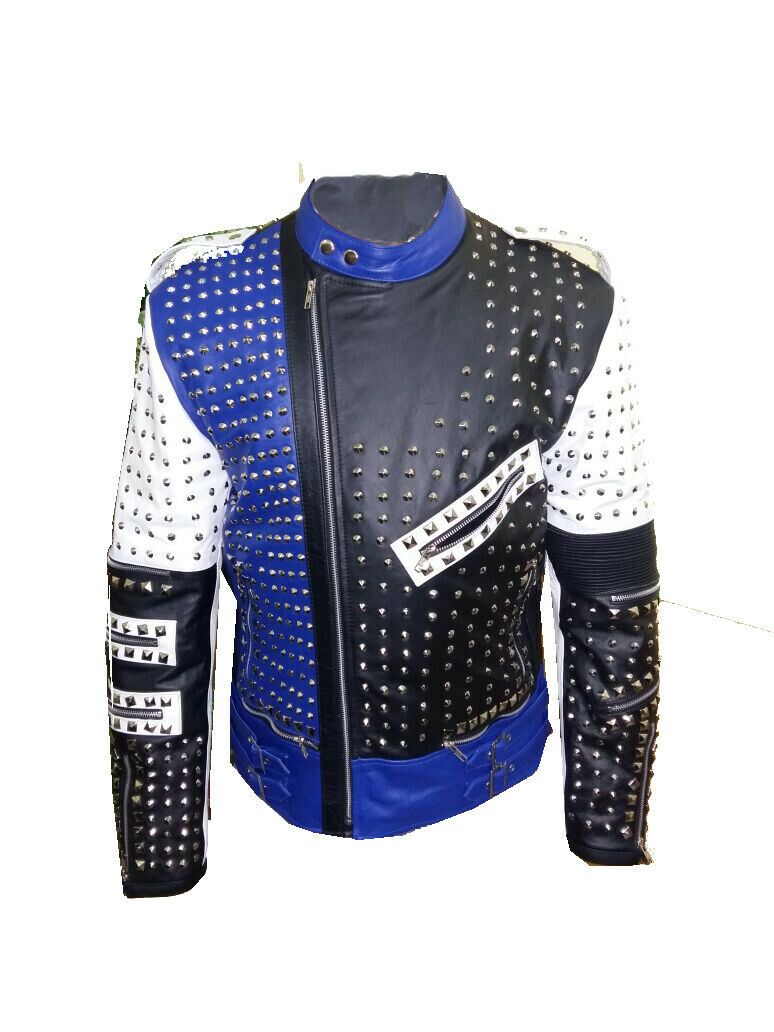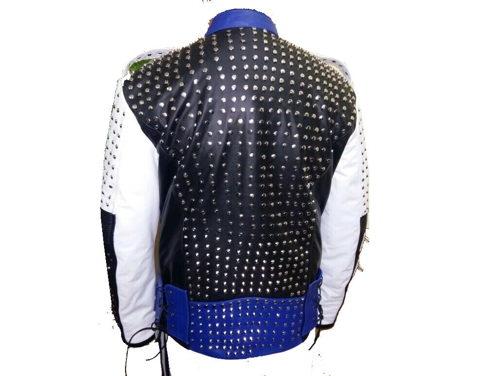 Mens Handmade Jackets Studs Cowhide Leather Motorcycle Style Zipper Shoes