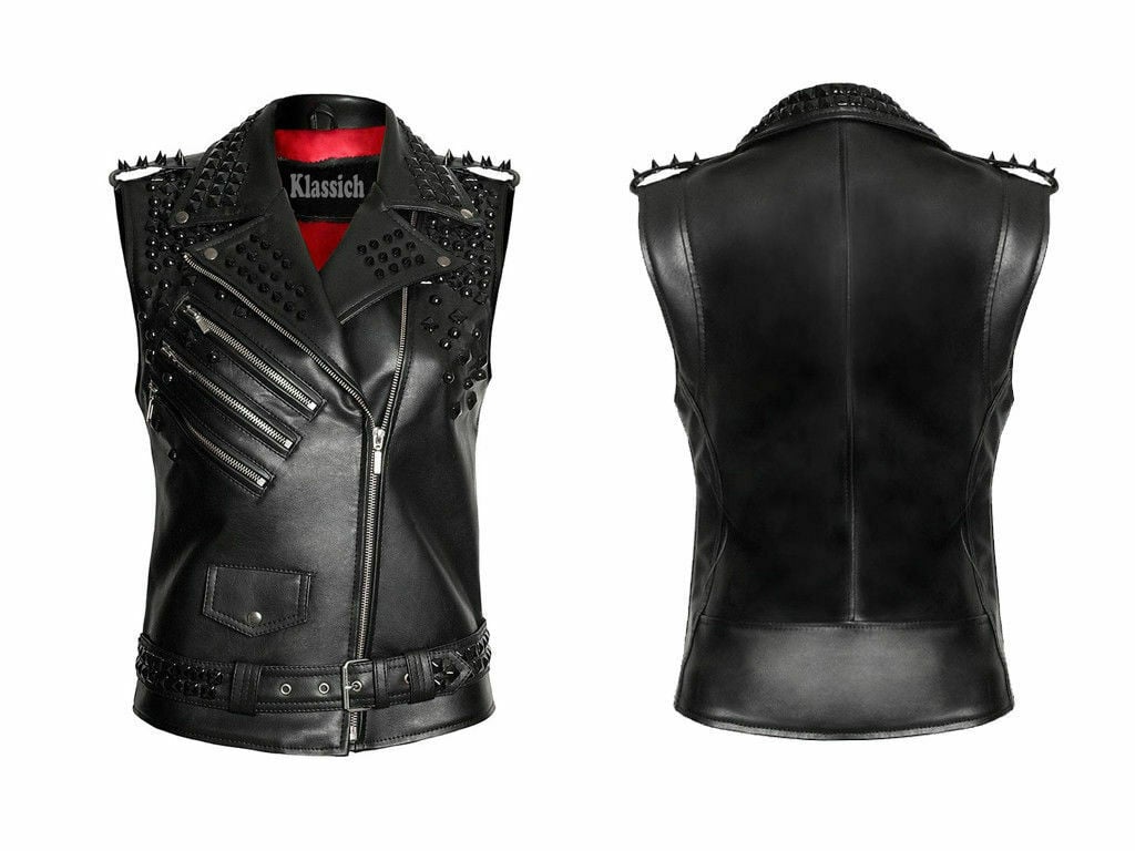 New Mens Handmade Studded Jackets Fashion Cowhide Leather Sleeveless Zipper Jacket