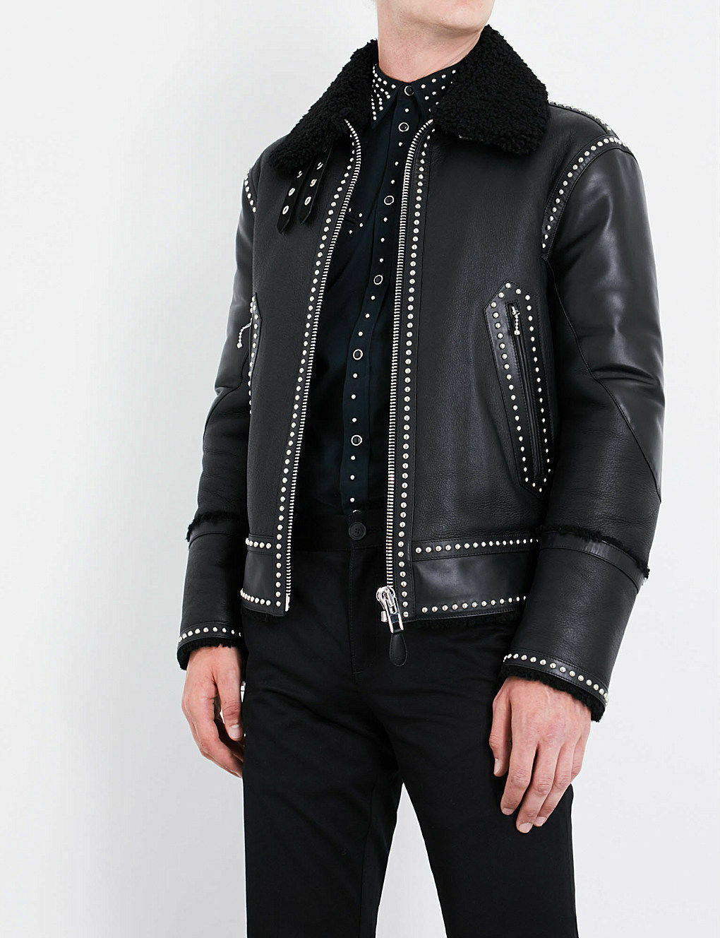 Man Handmade Studded Jackets Fashion Black Cowhide Leather Motorcycle Style Jacket