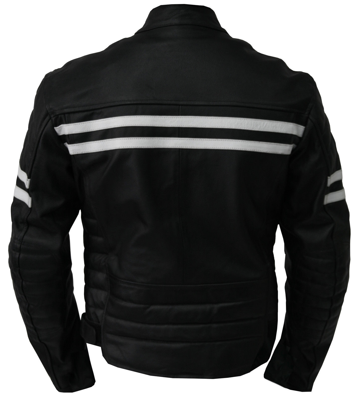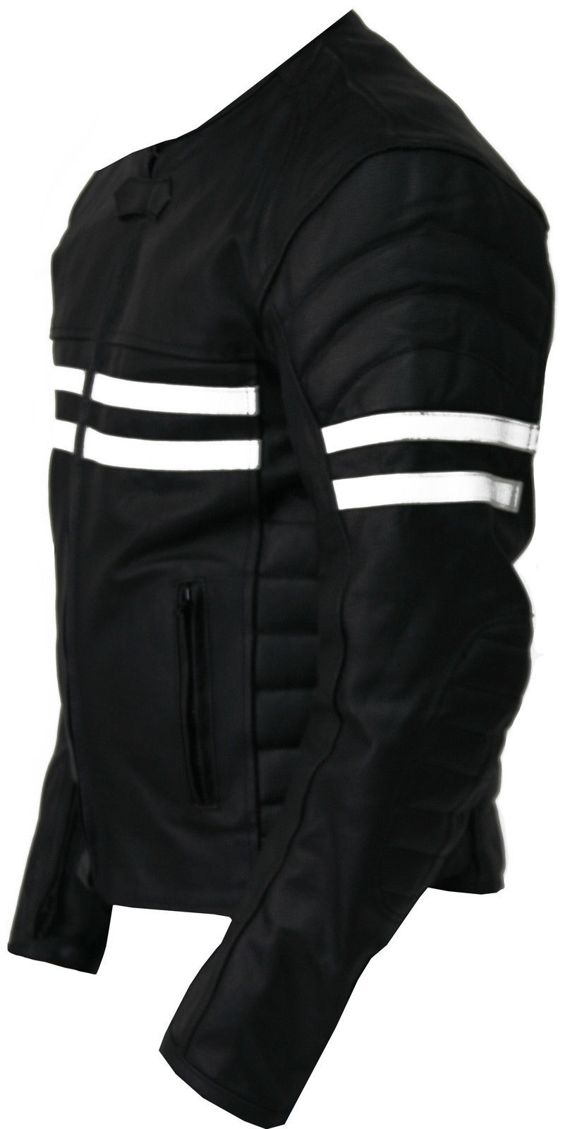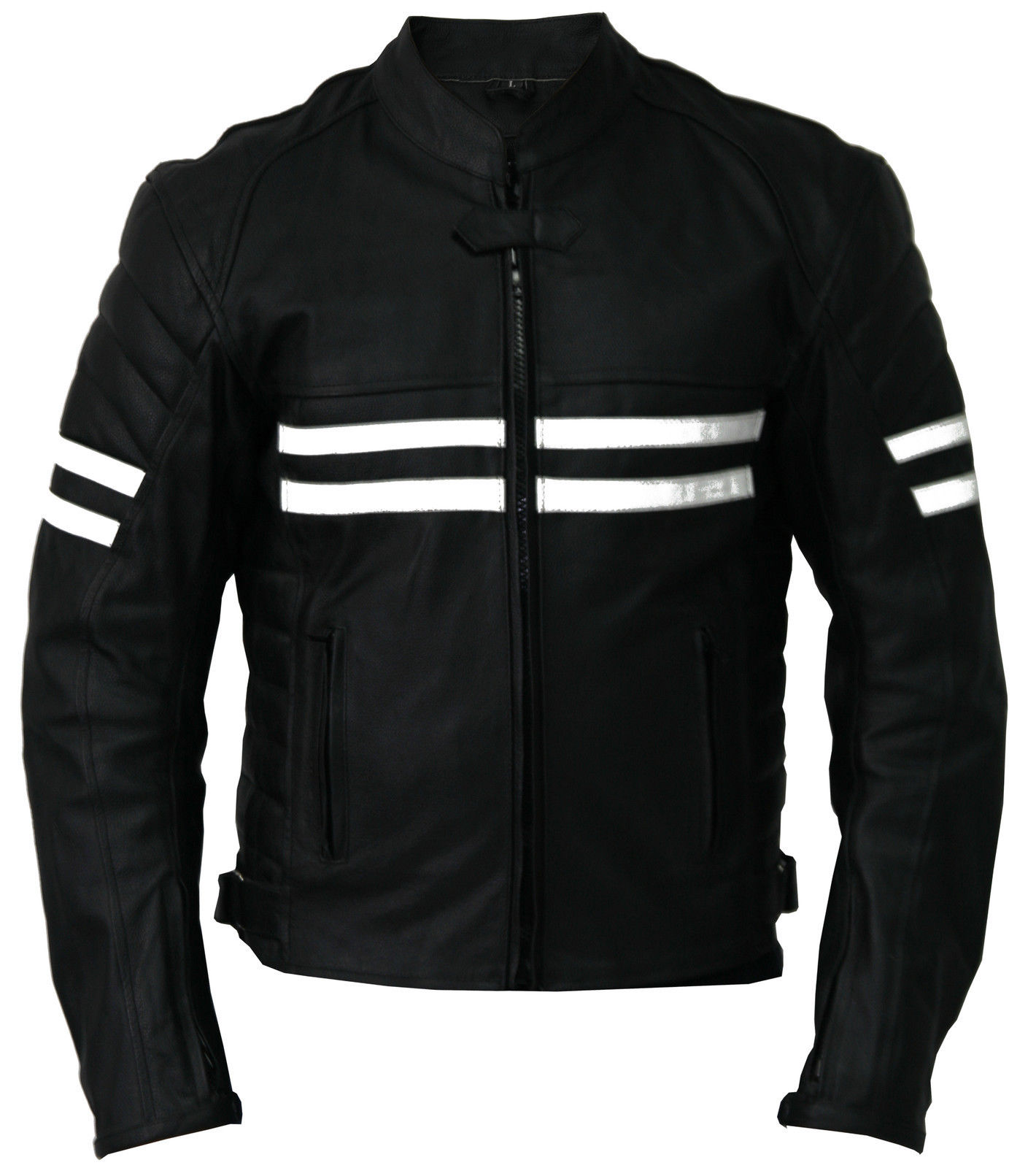 Mens New Biker Jackets Leather White Striped Design Hunter Casual Racer Motorbike Jacket