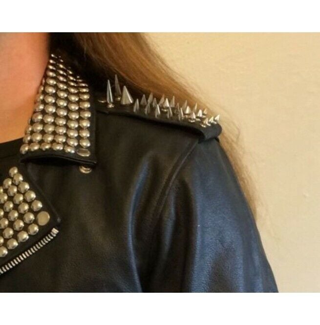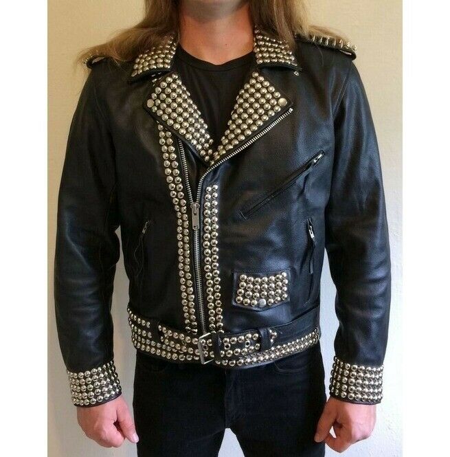 Men's Studded Leather Motorcycle Jacket Black Studs Spikes Rock Style