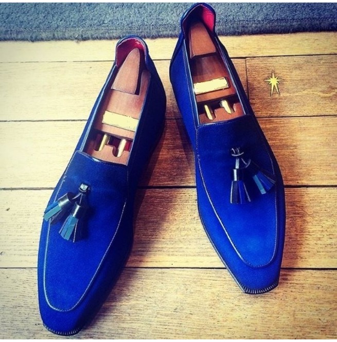 Handmade Men Royal Blue Suede Leather Tassel Loafer Formal Shoes