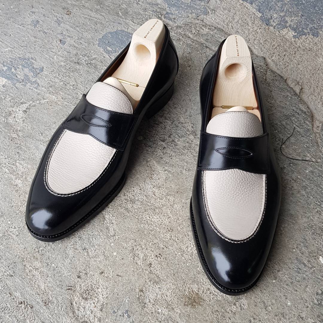Handmade Mens Black White Leather Loafers Formal Moccasin Shoes