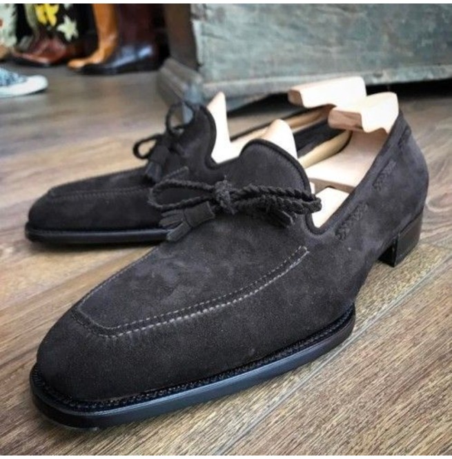 Handmade Men Dark Brown Suede Leather Tassel Loafers Dress Shoes