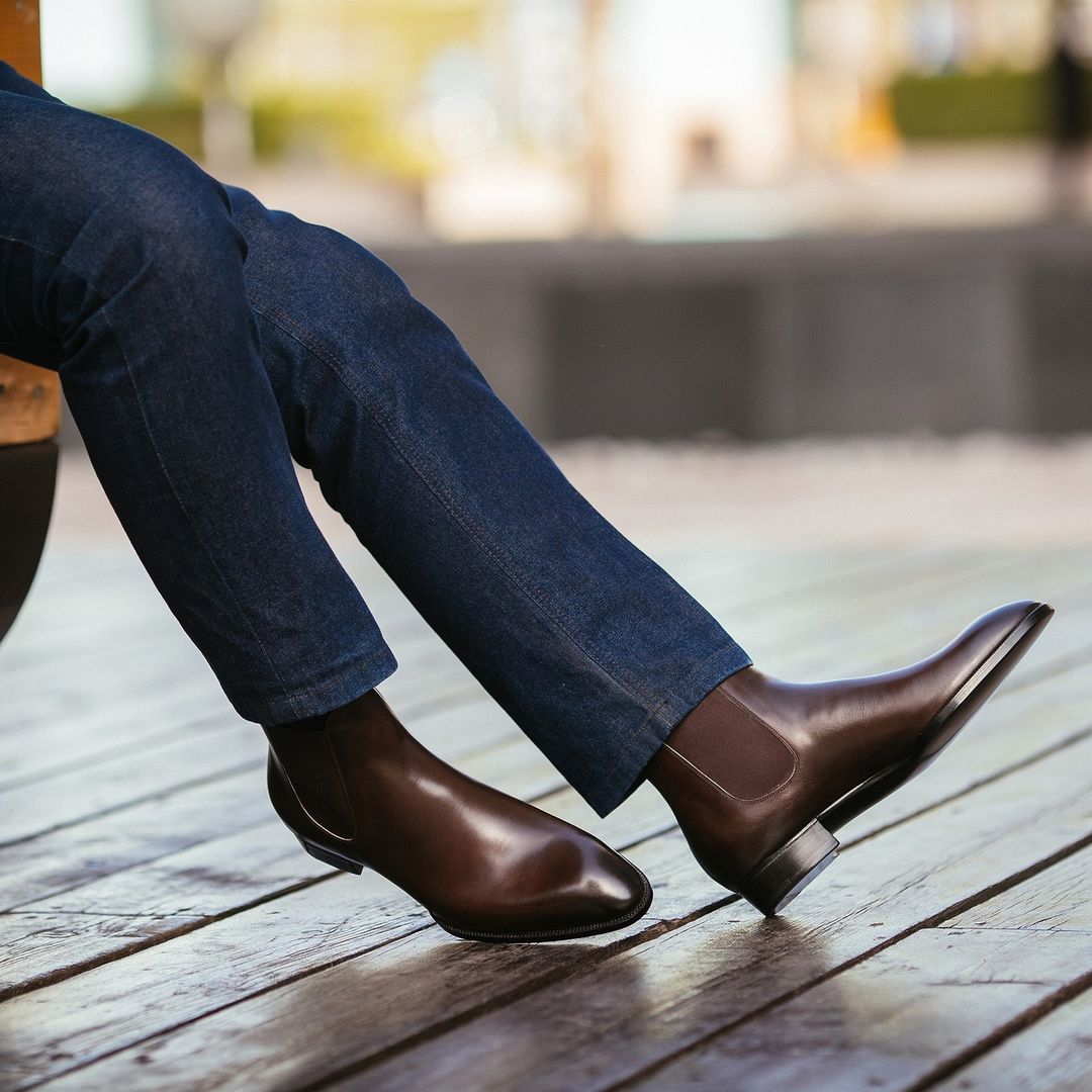 Dark Brown Calf Leather Men Chelsea Dress Boot