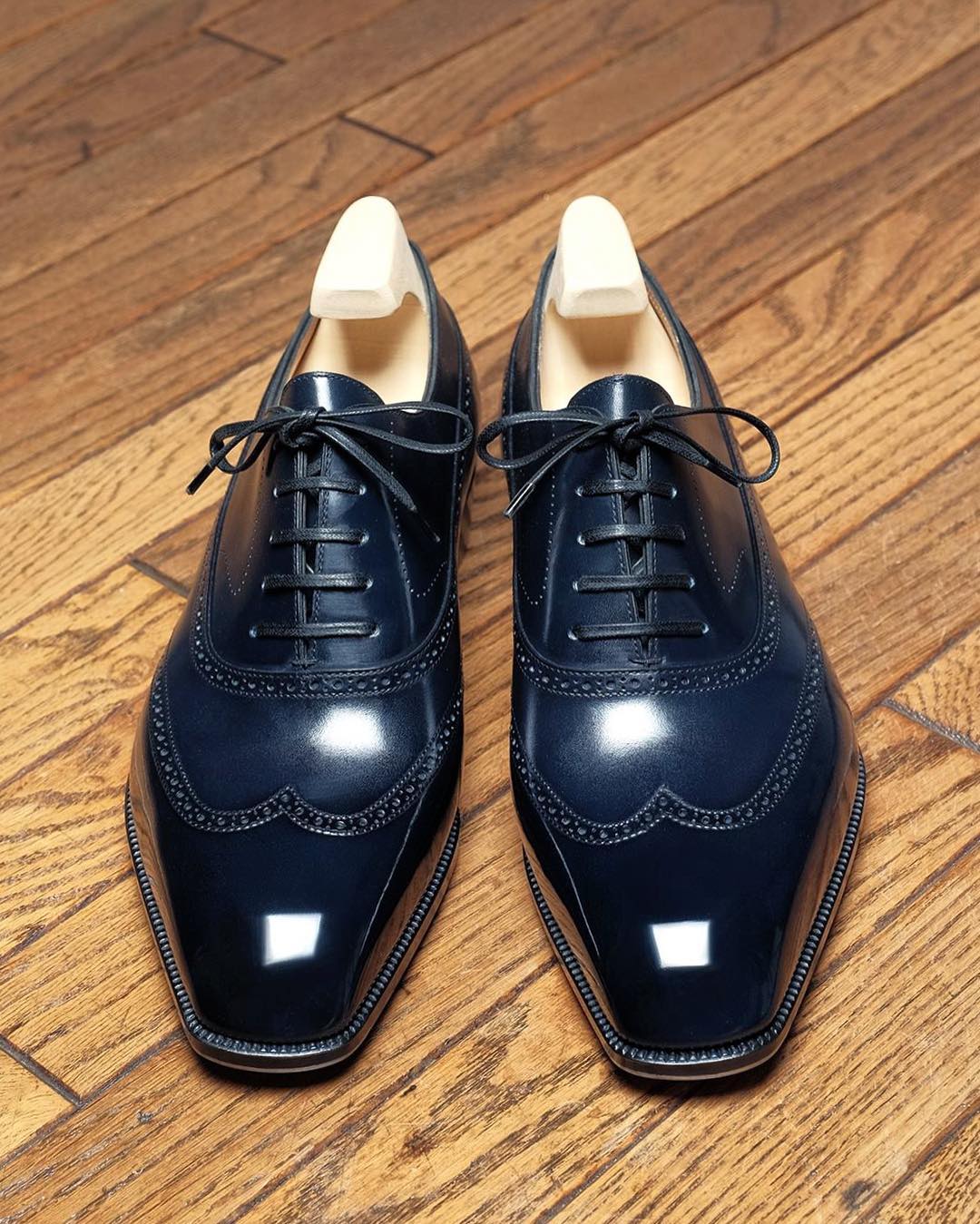 Handmade Blue Calf Leather Wingtip Oxford Mens Shoes