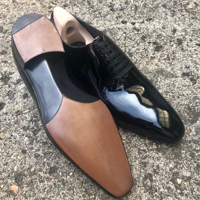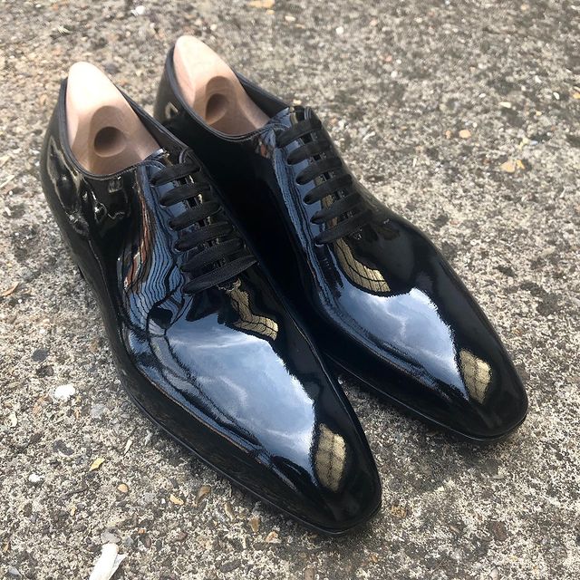 Bespoke Men Black Patent Leather Oxford with Silk Lacing Dress Shoes