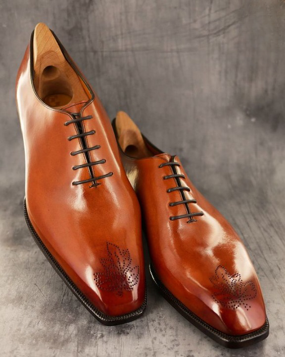 Bespoke Wholecut Oxford Men Brown Medallion Dress Shoes
