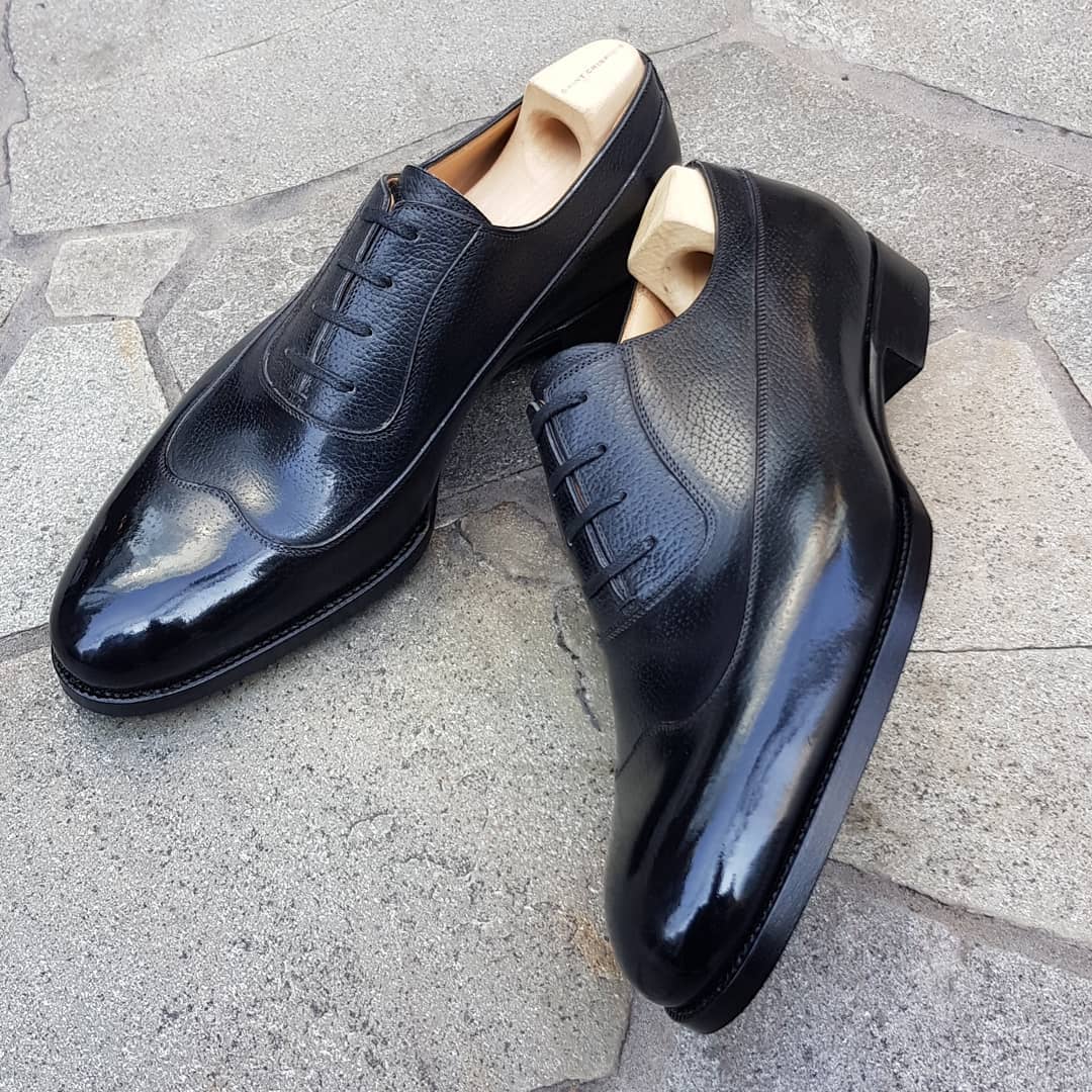 Elegant Dress Oxford in Black Inca Calf Leather Lace up Wingtip Shoes