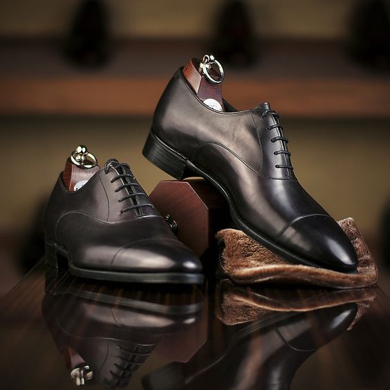 Men Black Calf Leather Handmade Dress Formal Lace up Shoes