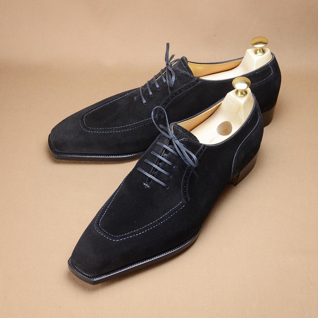Handmade Dress Lace up Oxford Apron Front in Black Suede Styles Shoes