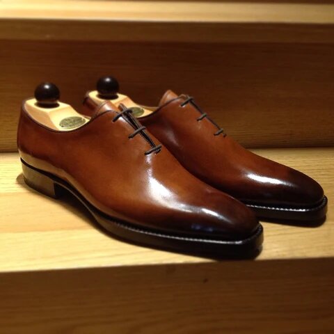 Handmade Men Wholecut Oxford Gold Museum Calf Leather Dress Shoes