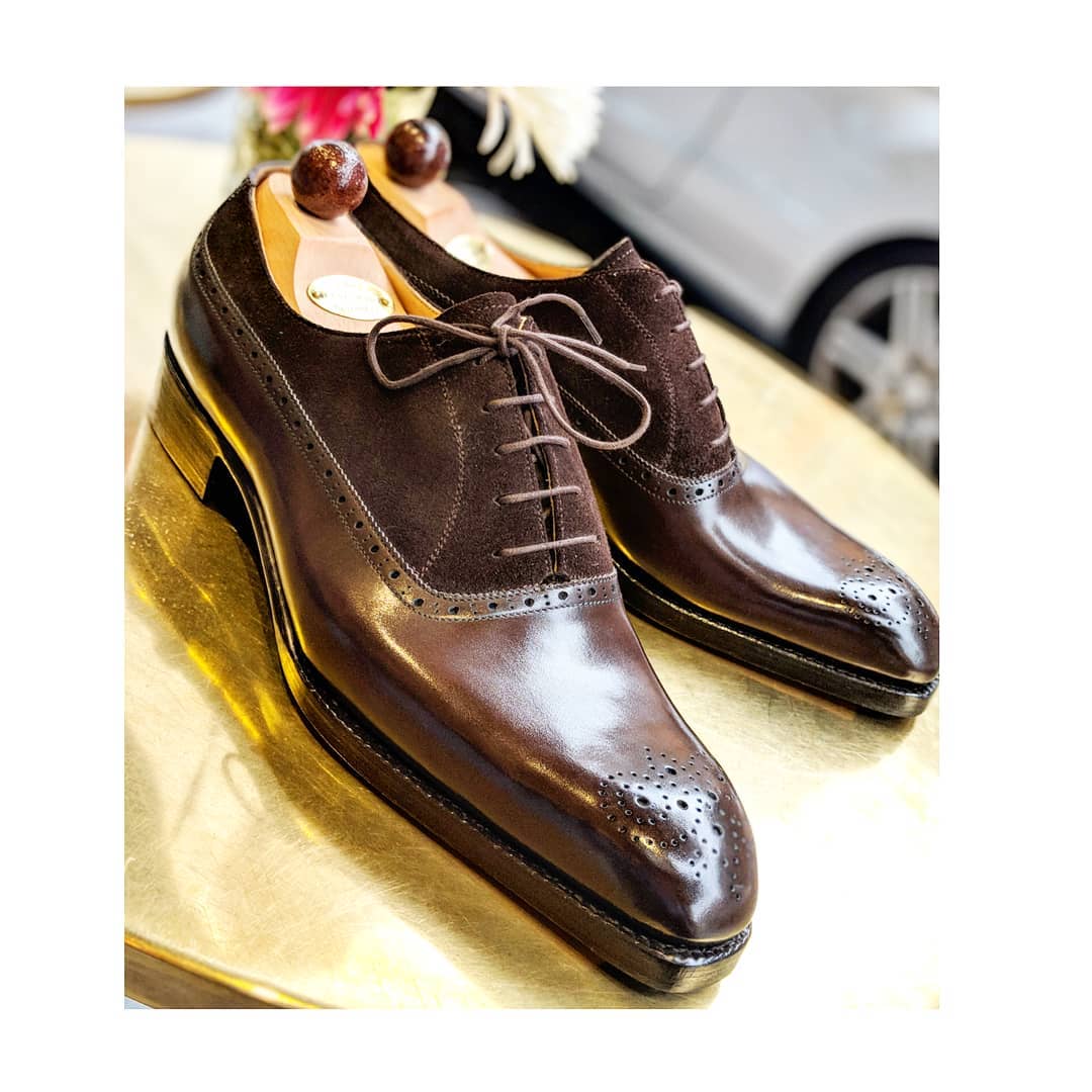 Handmade Men Brown Suede Leather Lace up Dress Formal Office Shoes