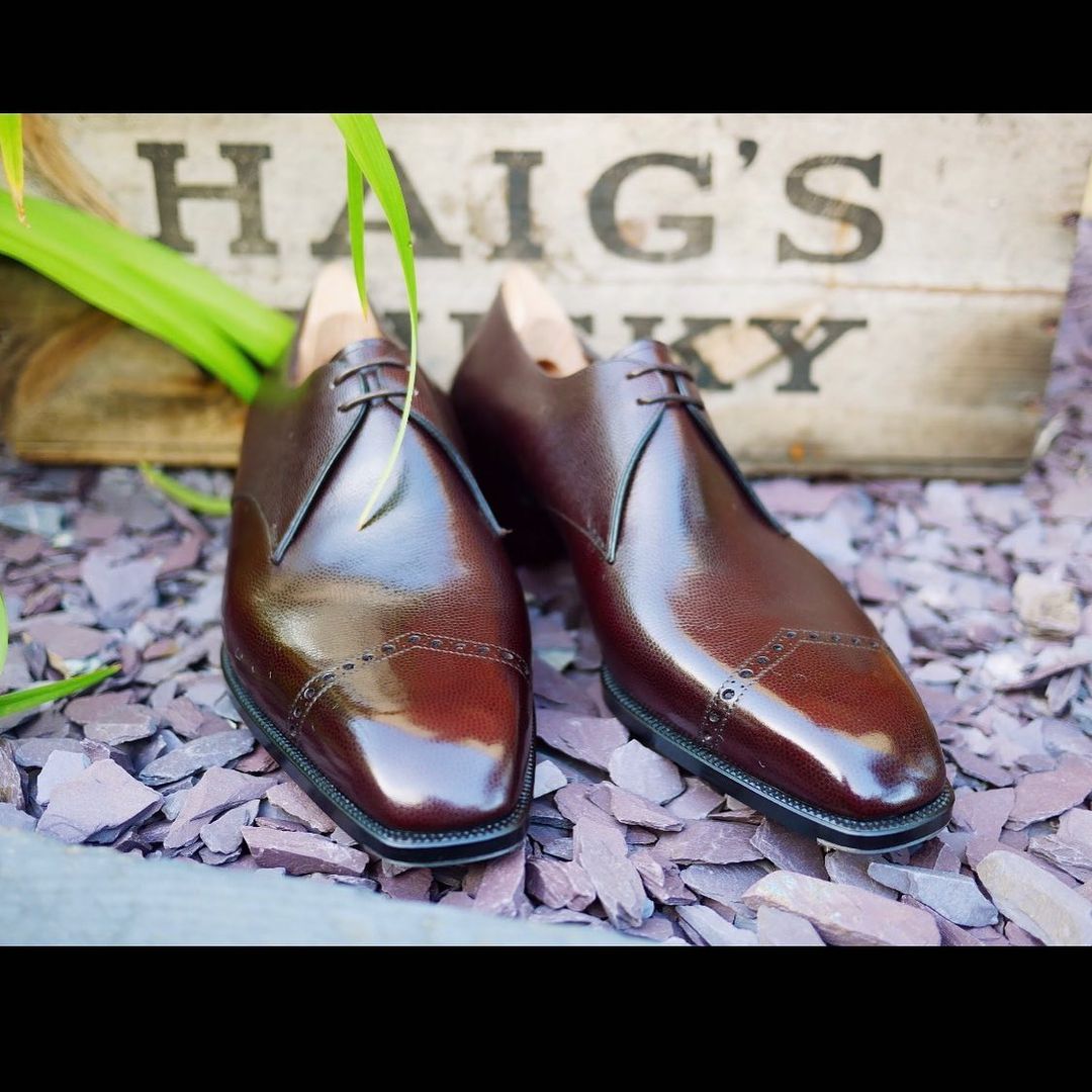 Beautiful Handmade Men Brown Pin Grain Derby Oxford Dress Shoes