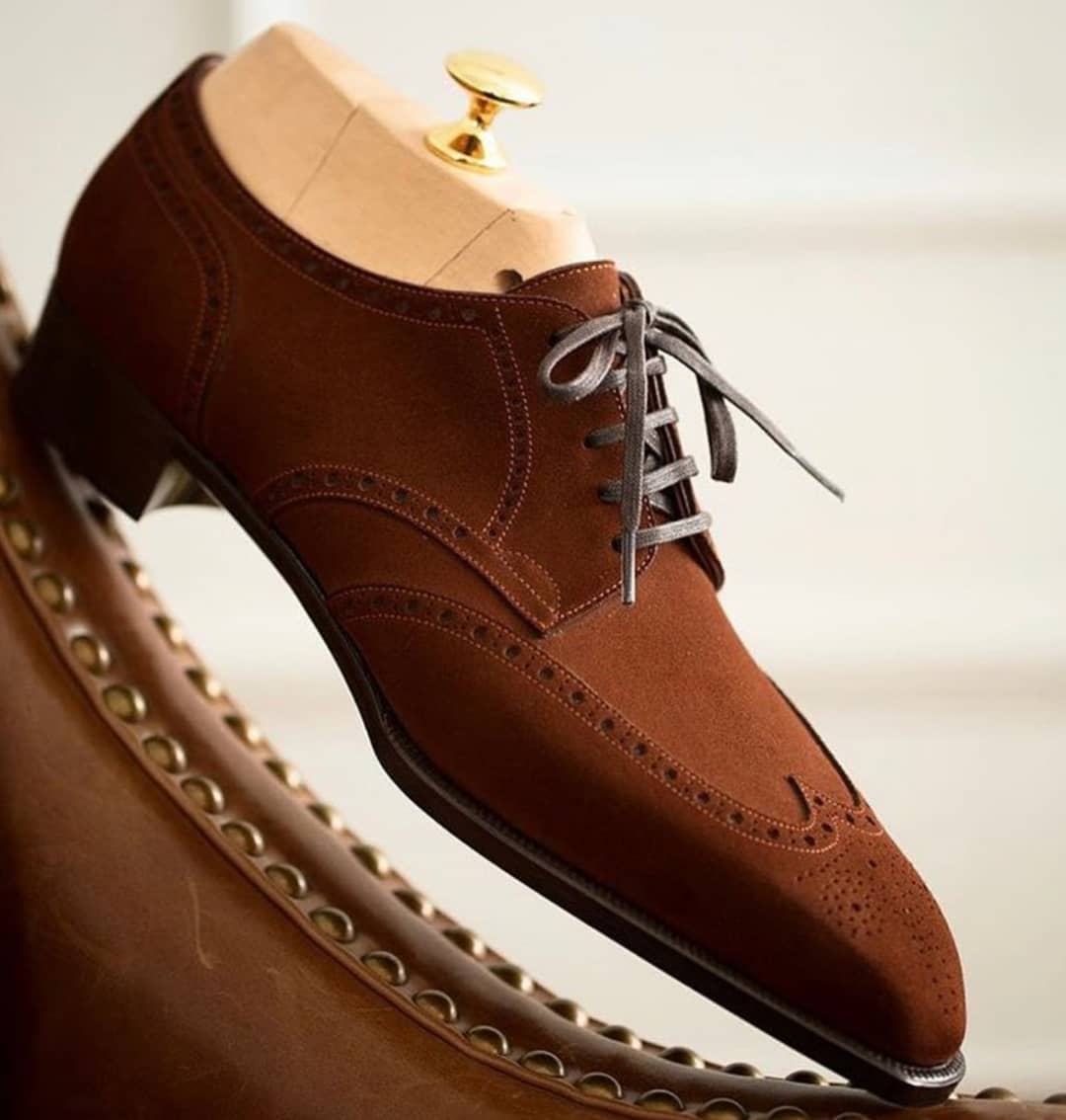 Men Brown Suede Leather Lace up Wingtip Oxford Dress Shoes Handmade