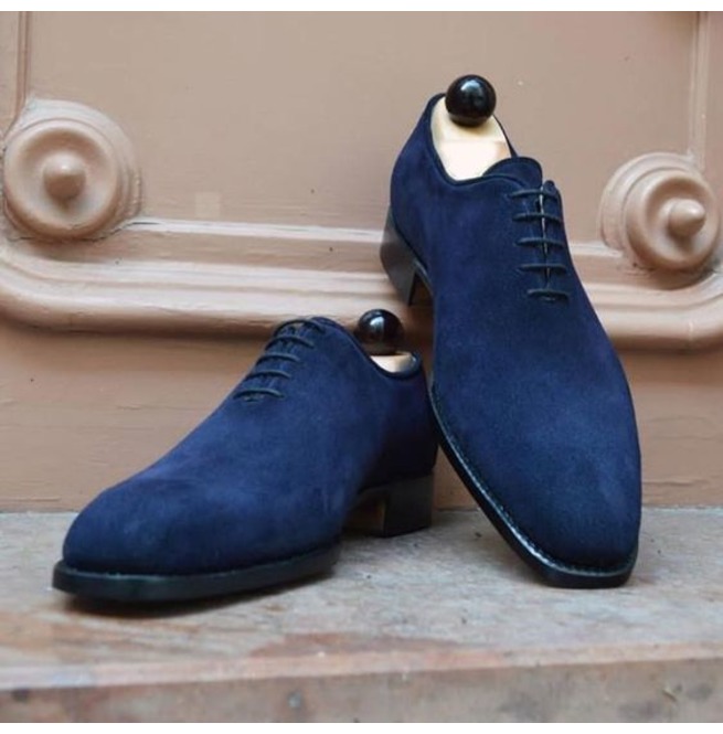 Handmade Mens Wholecut Oxford - Blue Suede Leather Lace up Dress Shoes