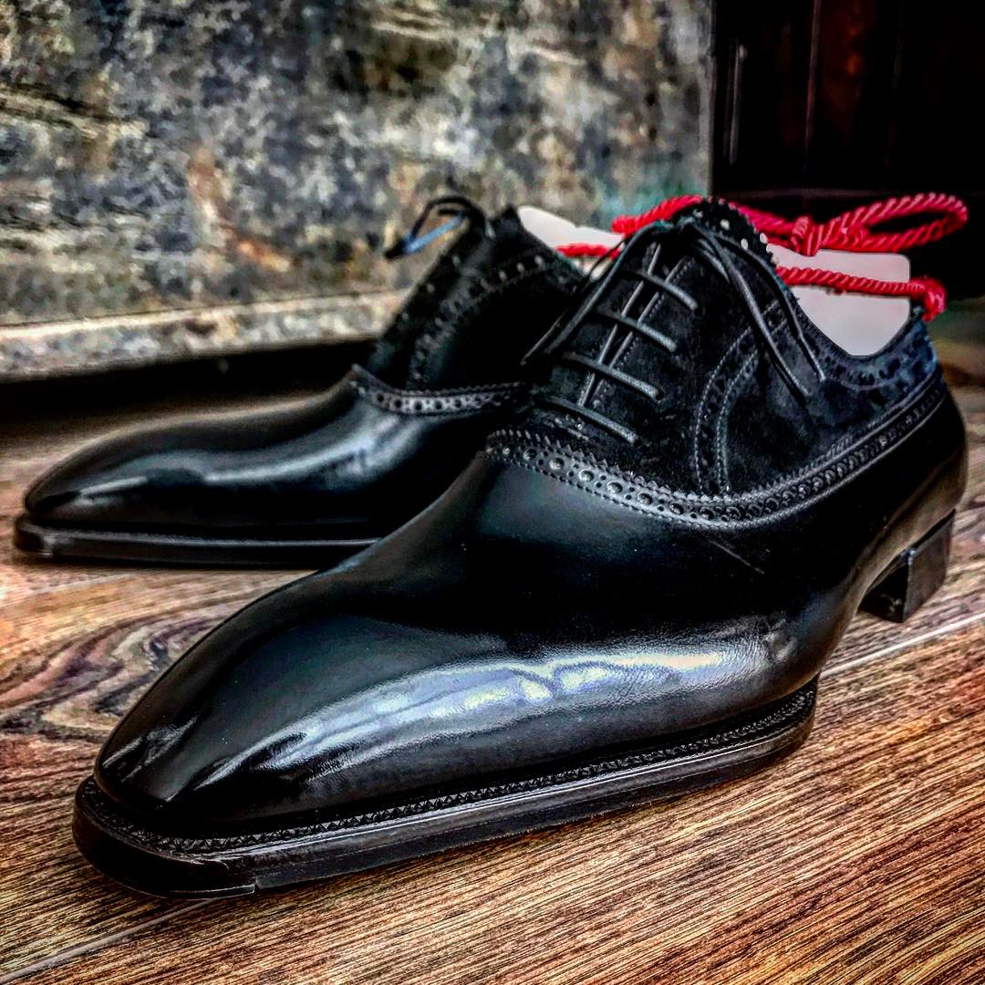 Handmade Mens Oxford Black French Calf and Suede Dress Shoes