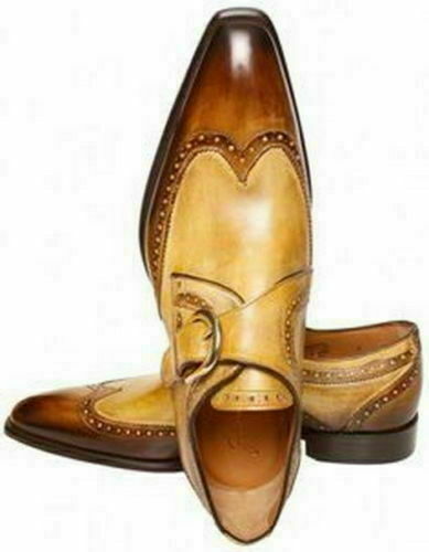 New Men's Handmade Shoes Wingtip Monk Strap Leather Tan & Brown Dress Shoes
