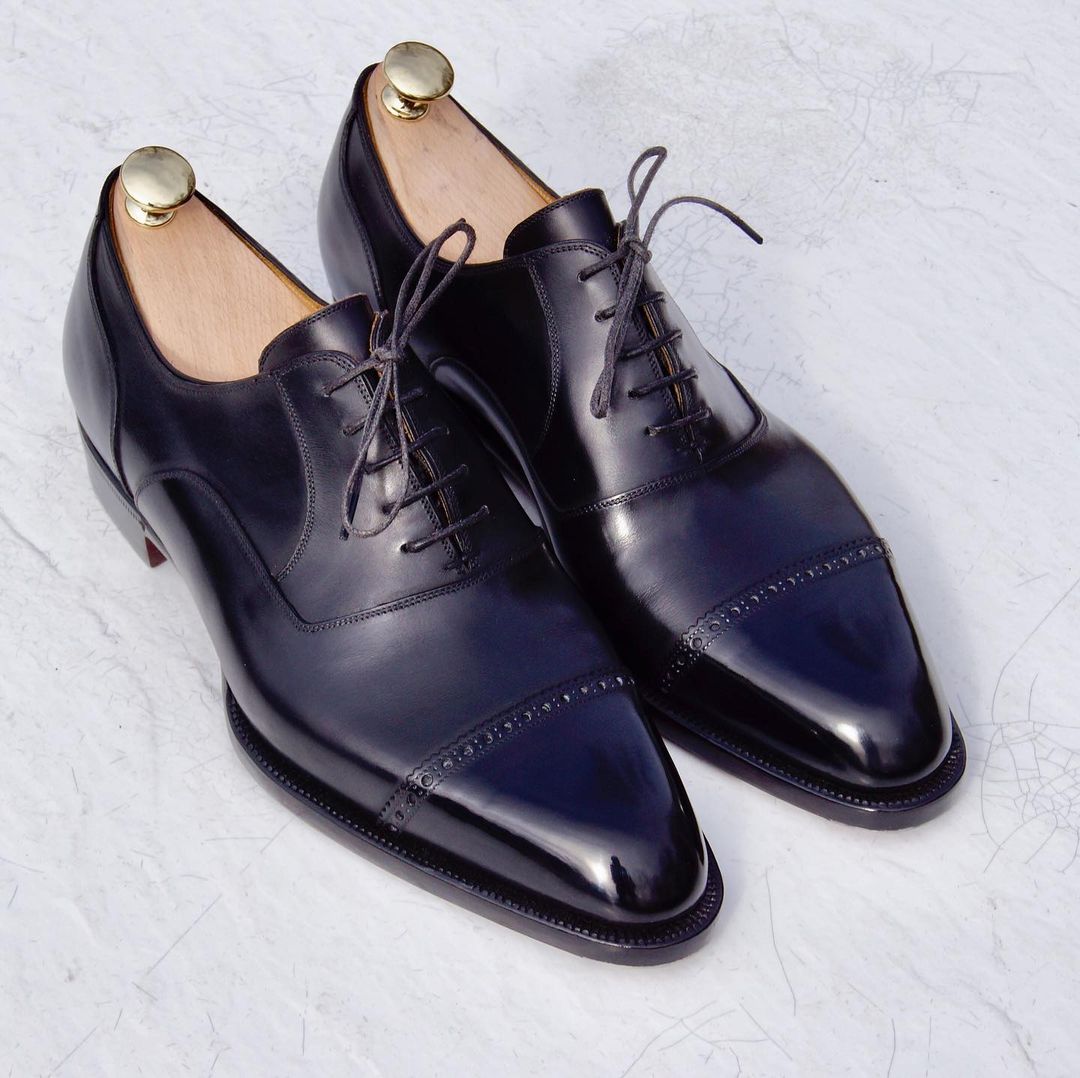 Handmade Men Black Leather Oxford Lace up Dress Shoes
