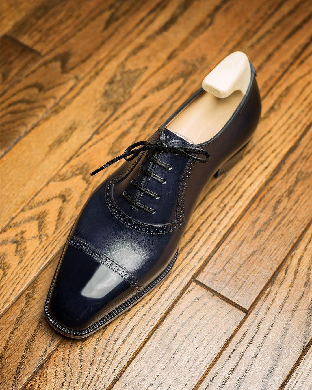Handmade Mens Style Navy Blue Oxford Dress Formal Shoes