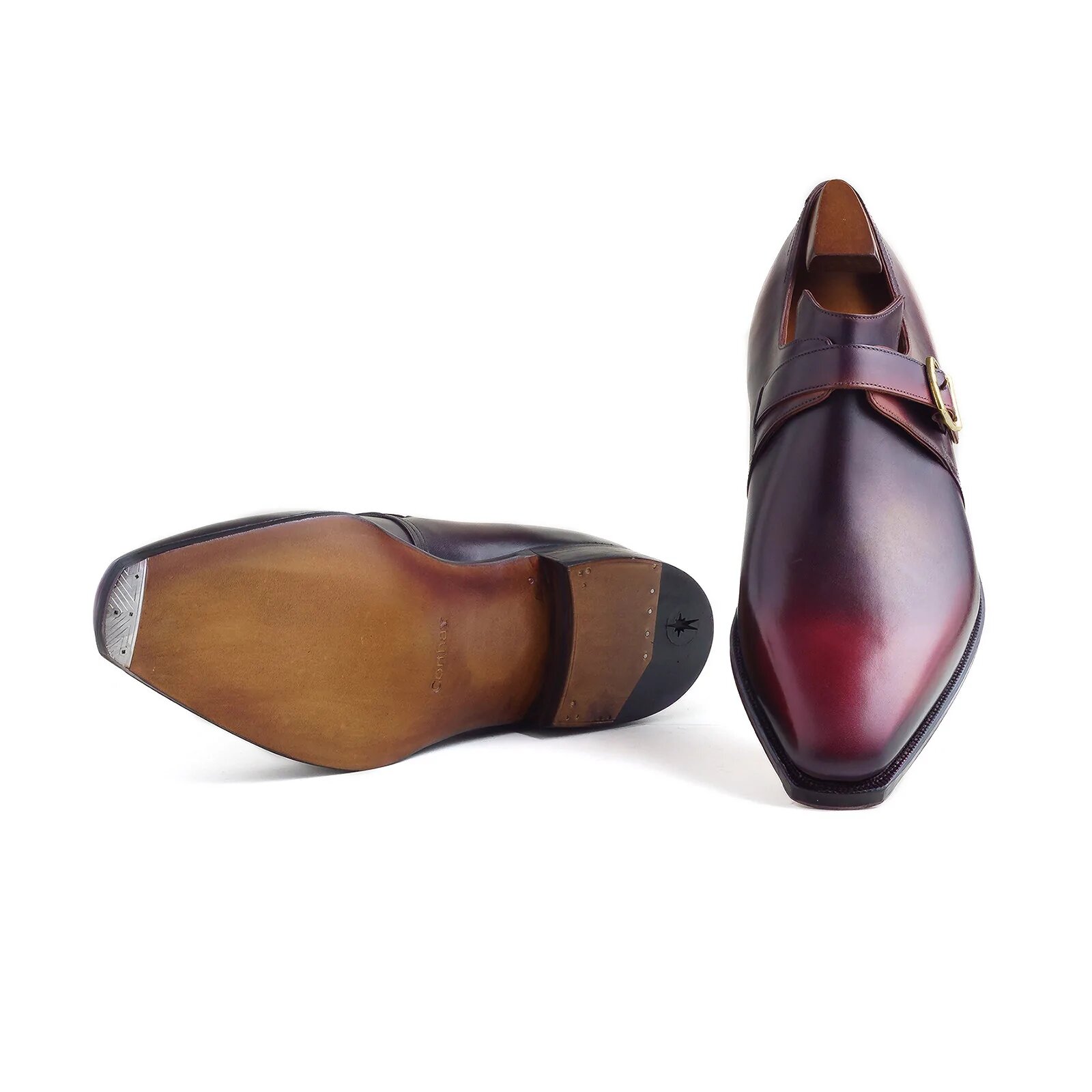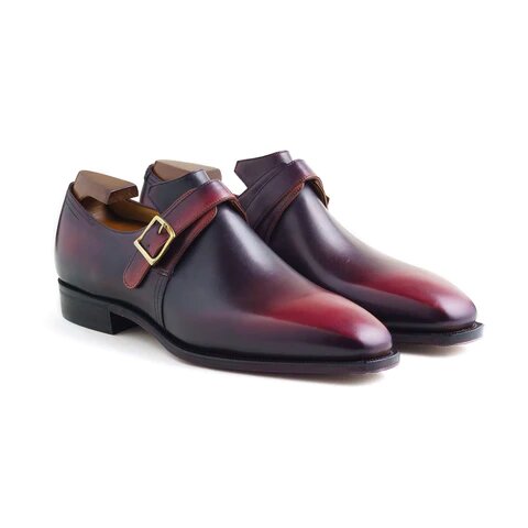 Handmade Beautiful Light Calf Patina Single Monk Strap Dress Shoes With Matching Belt
