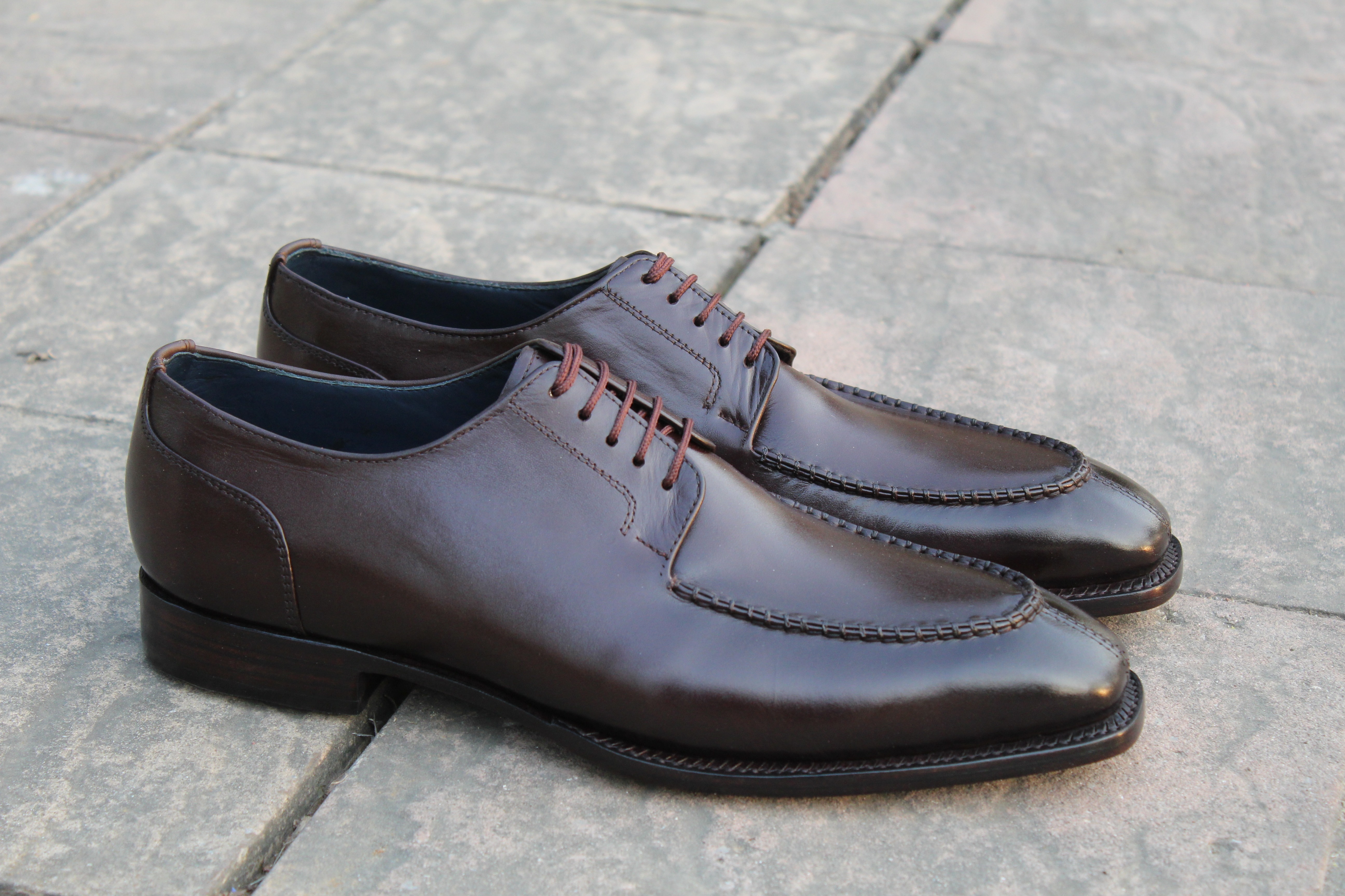 Dark Brown Leather Handmade Men Oxford Dress Shoes