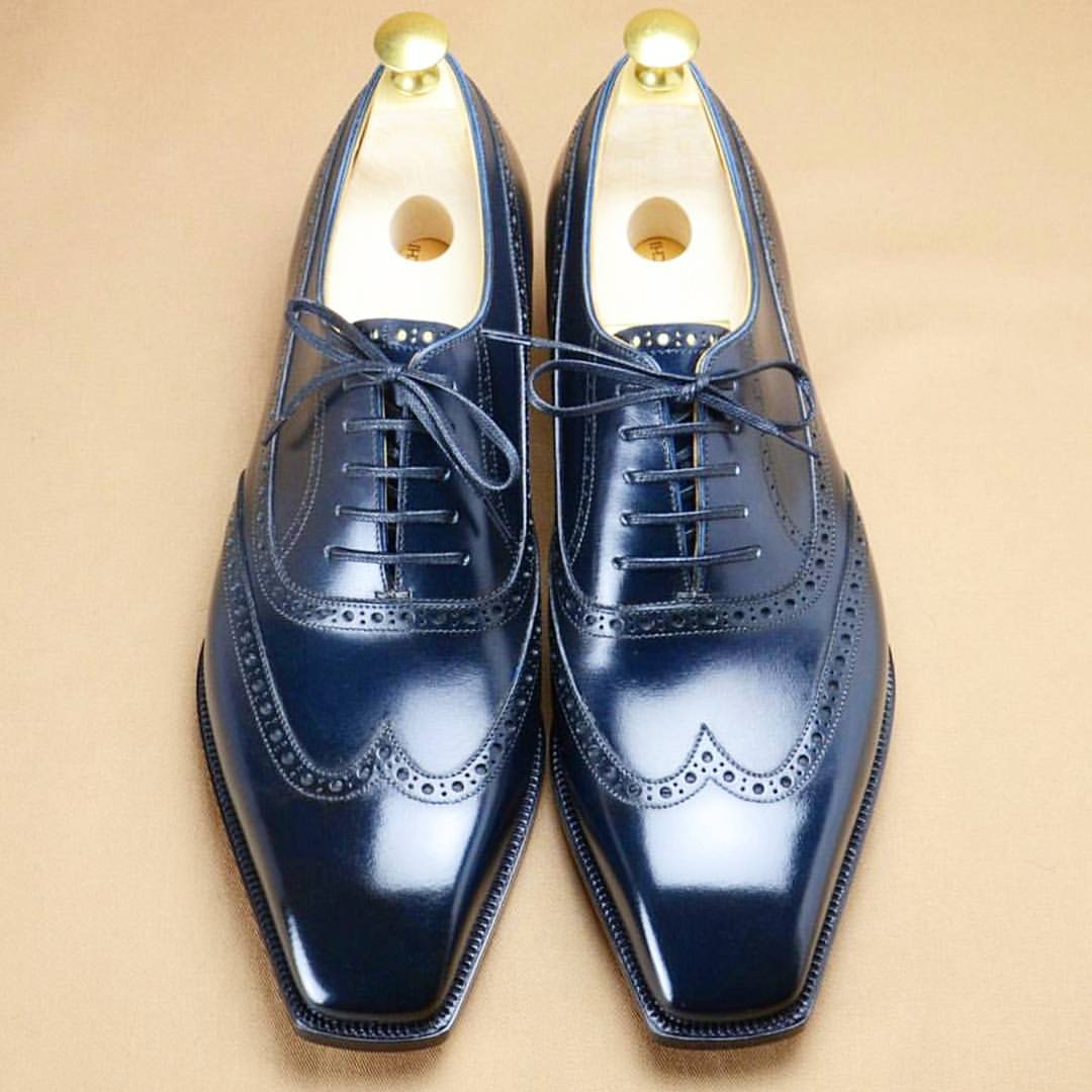 Inner: Soft Sole: Leather Gender : Male Heel: Leather Color: Blue Style: Oxford Shoes Lining Soft Calf Leather Lining Totally Hand stitched Manufacturing time 7-10 business days If you can’t find your Size/Color just send us message we will make for you.