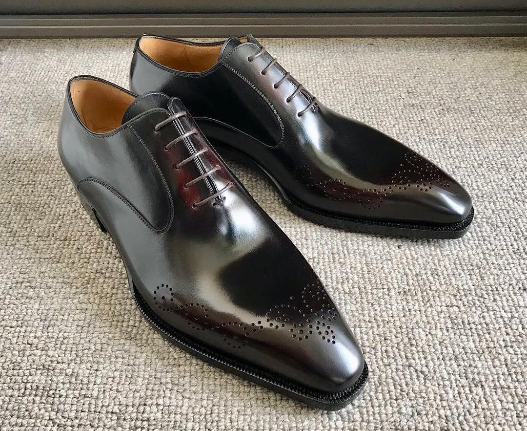 Black Patina on dark Burgundy French Calf Leather Dress Lace up Shoes