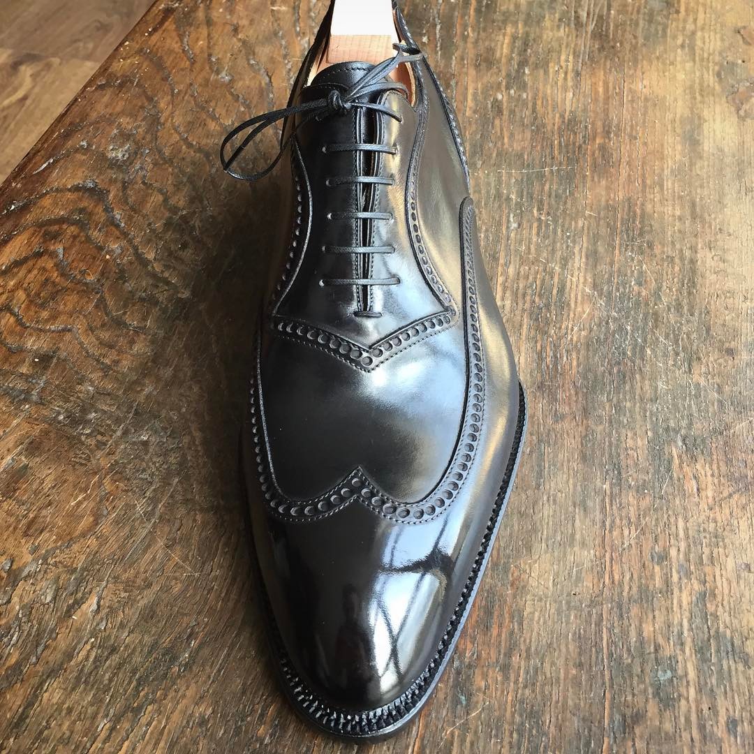 Handmade Mens French Black Calf Almond Toe Wingtip Dress Oxford Shoes