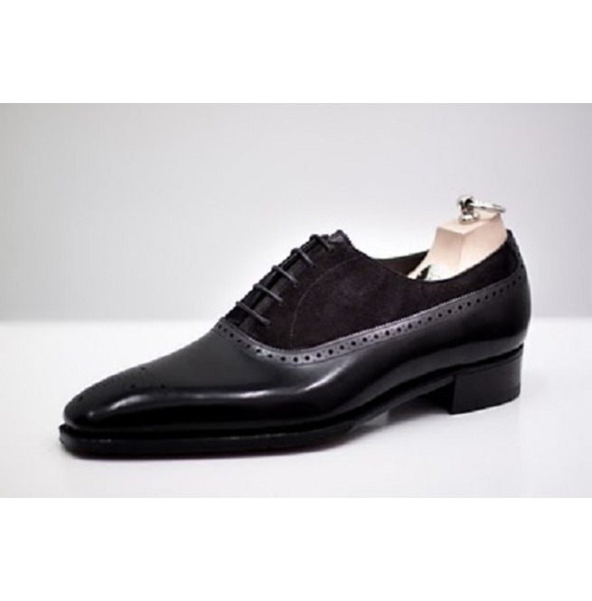 Handmade Men Black Suede & Leather Formal Dress Oxford Shoes